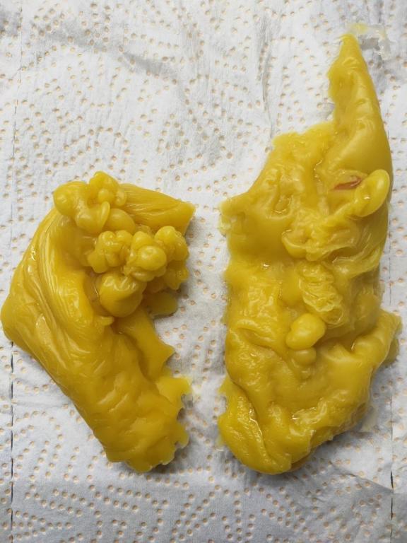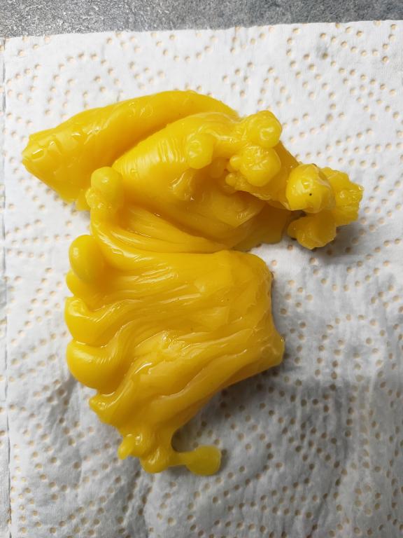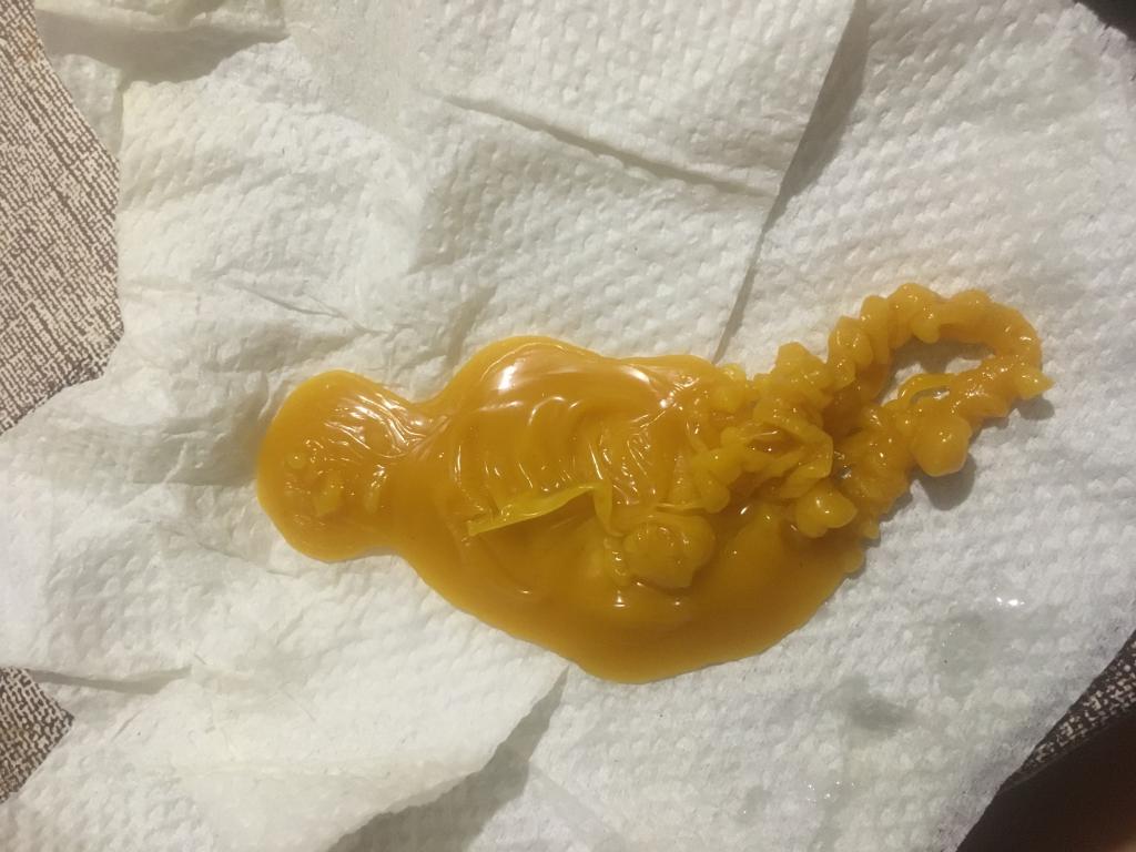 Доброго времени.Отливка та, что справа показывает что негатив закрыт и начинает вытягиваться через щели и прорехи в защите этого негатива. На левой отливке негатив открыт и проявился более явно и определенно с человека что-то снялось. Мне представляется какой-то силуэт с вытянутой рукой и указывающий пальцем на что-то. Возможно лярва, возможно мертвяк... Что-то из этих сущностей. По дальнейшей работе могу сказать, что лучше начинать сеанс отливок с разрушения замков, одна отливка, потом на отсечение каналов и привязок и на удаление подселенца. По три отливки на каждый заговор три дня подряд.  Лить лучше через серп. Возможны взрывы воска. Это сопротивляться сущь будет. И это все надо будет делать на протяжении не одного лунного цикла.
