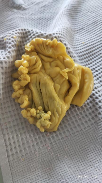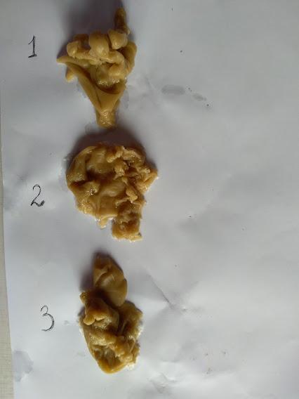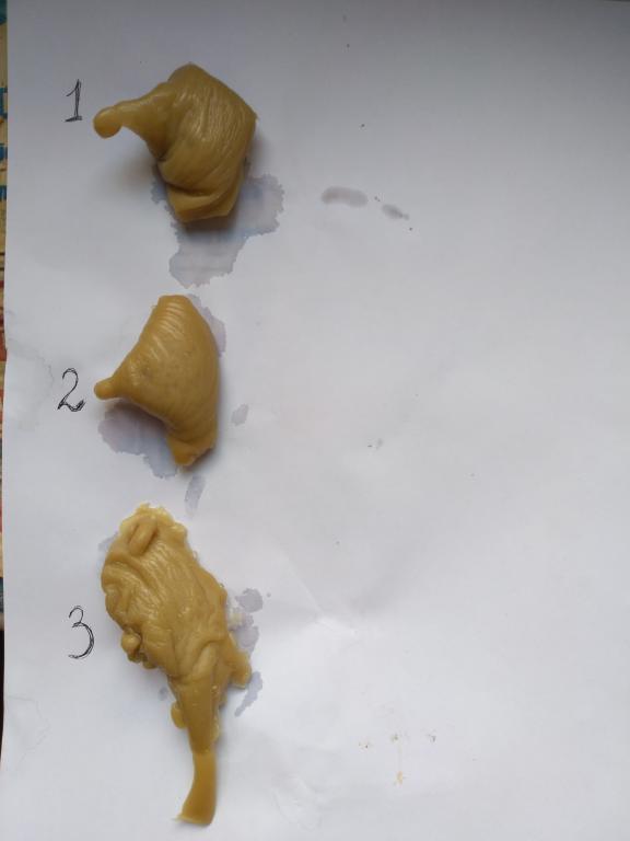 И, будьте добры, гляньте мои отливки. Женщина 36 лет, отливала сущность, конкретно беса-есть подозрение, что он давно прицепился. Но я вижу на 1 отливке здоровый череп слева. На второй сверху лежит еще одна "красавица" ручки тянет и снизу что-то есть. Как вы понимаете с чтением отливок у меня беда ::)