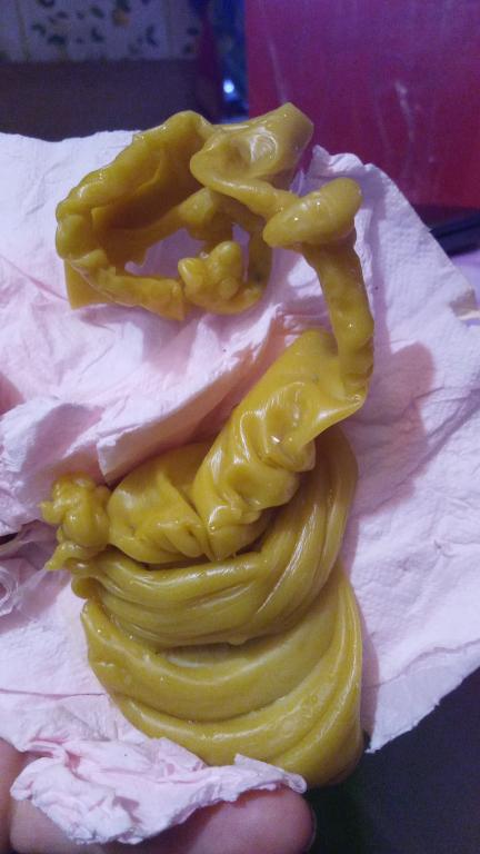 Доброго всем времени суток) Сегодня отливала с заговором от подселения. Думаю, что жгуты на конце с каждой отливкой становятся все меньше) конечно по итогу отжиг.  Просьба прокомментировать, ув. практики.