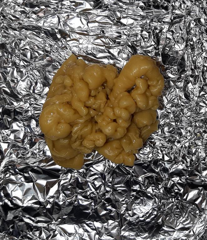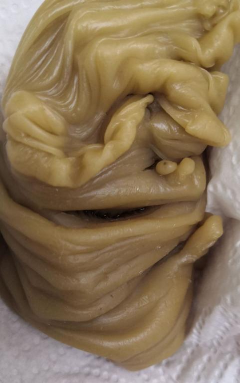 Воск изначально был не чисто желтый ,а с примесями чего то темного .