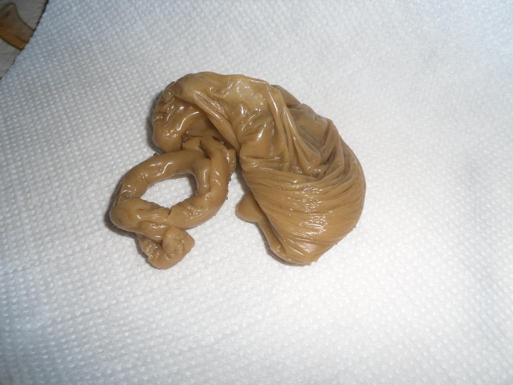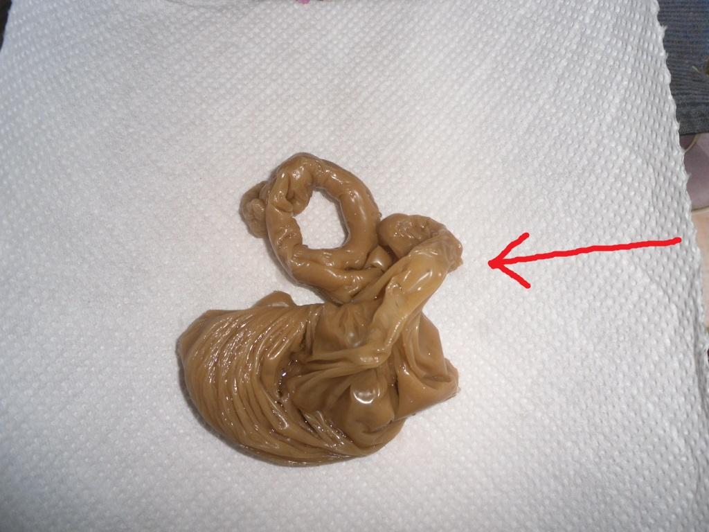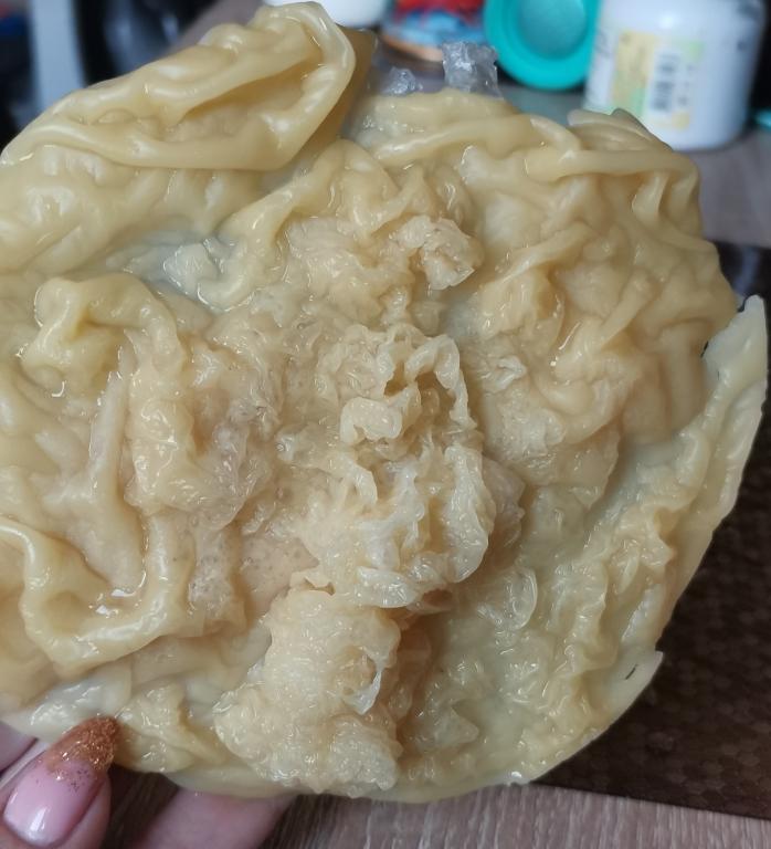 Здравствуйте, уважаемые практики! Помогите пожалуйста интерпретировать диагностическую отливку. Я в этом деле ещё зелёная и первый раз такую странную лепешку вижу, сложно. Воск вроде не перегрелся(топила на маленьком огне, не трещал) Заранее благодарю!