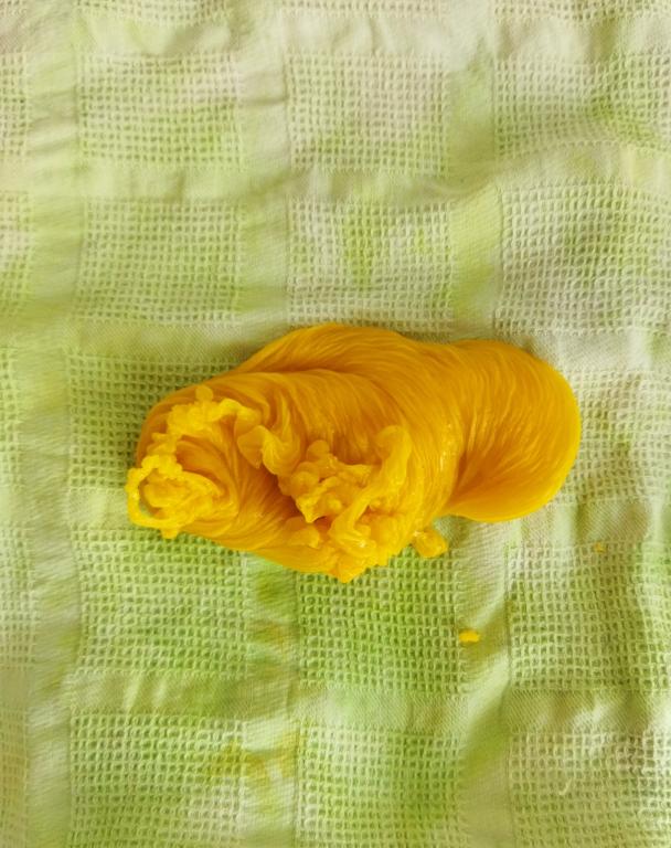 Делала на фото ,не очно . Воск покупался на пасеке ,изначально был темным .