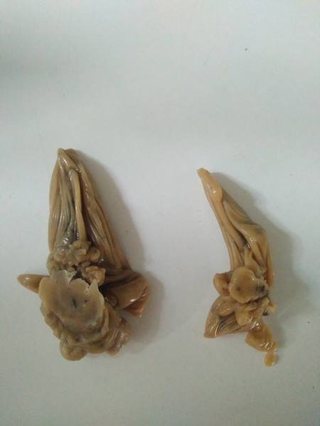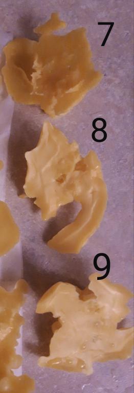 Вводные данные: чистка отношений с б.м., незакрытый гельштат у обоих, расстались более чем странно, его мамашка постоянно что то нам лепила, на с 4 по 6 отливку начал забивать непрекращающийся кашель, еле дочитала (взлом замков со снятие порчи на отношения). Отчитка была от порч, рассорок и пр. Для всех 9 отливок характерны полые воздушные пузыри на обратной стороне. Воск не перегрет, топились последние куски уже на столе и остужала минуты по 3- 4 перед тем как лить, не закипал.