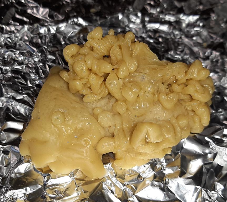 Вот так вылилась , как мне кажется в форме рыбы. Верх-низ соблюдены. Смею предположить что вредитель знака зодиака рыбы .