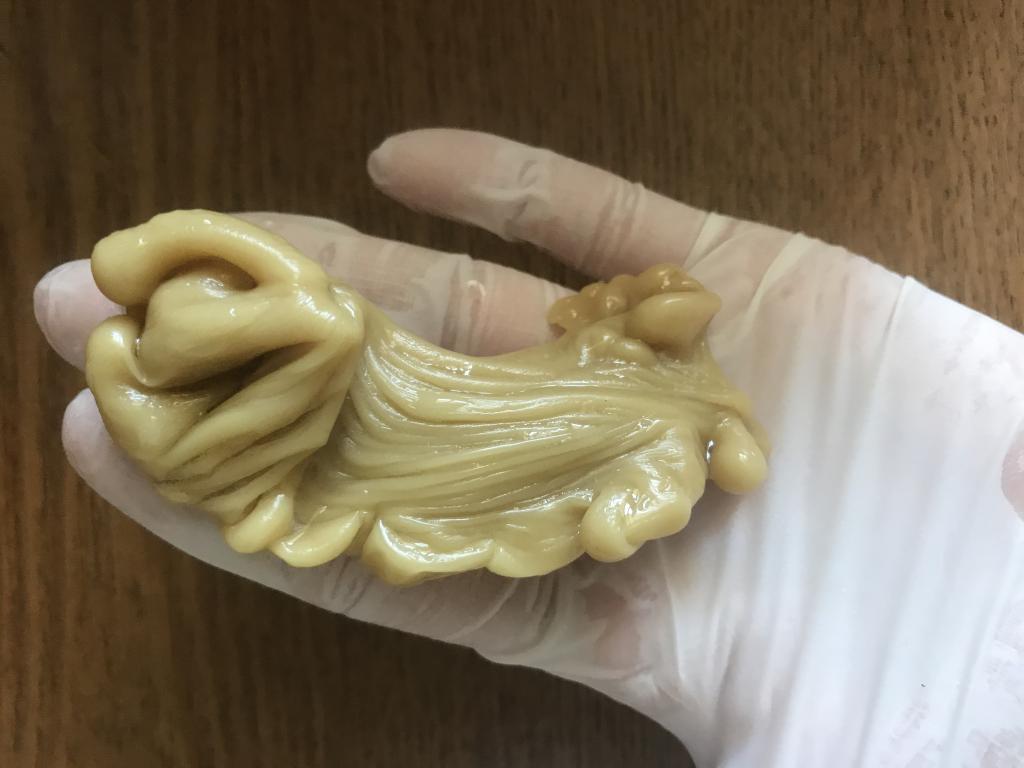 Добрый день, уважаемые практики. Отливала мужа на негатив. Вообщем по состоянию вижу, что сдвиги есть и отливки выравниваются, но вот с третьей не могу понять, что это может быть ( жгутик вокруг блинчика) или родовое или ещё что-то.