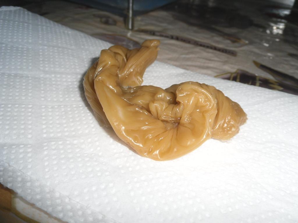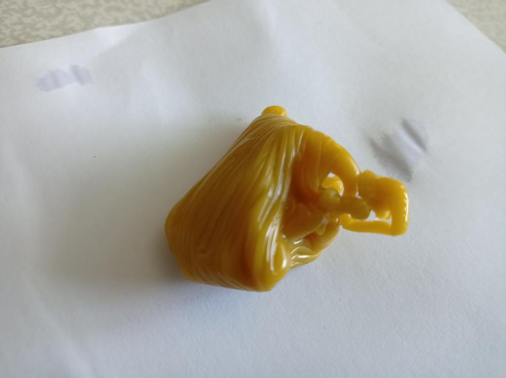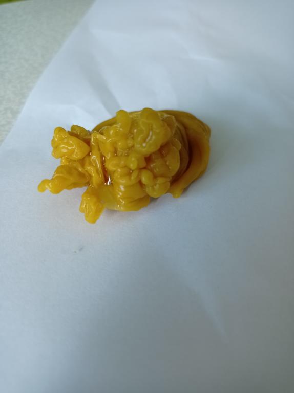 Воск перегрет, поэтому можно увидеть то, чего нет. Вижу  лярву.  Плюс у вас видимо миска низкая  или воды мало налили