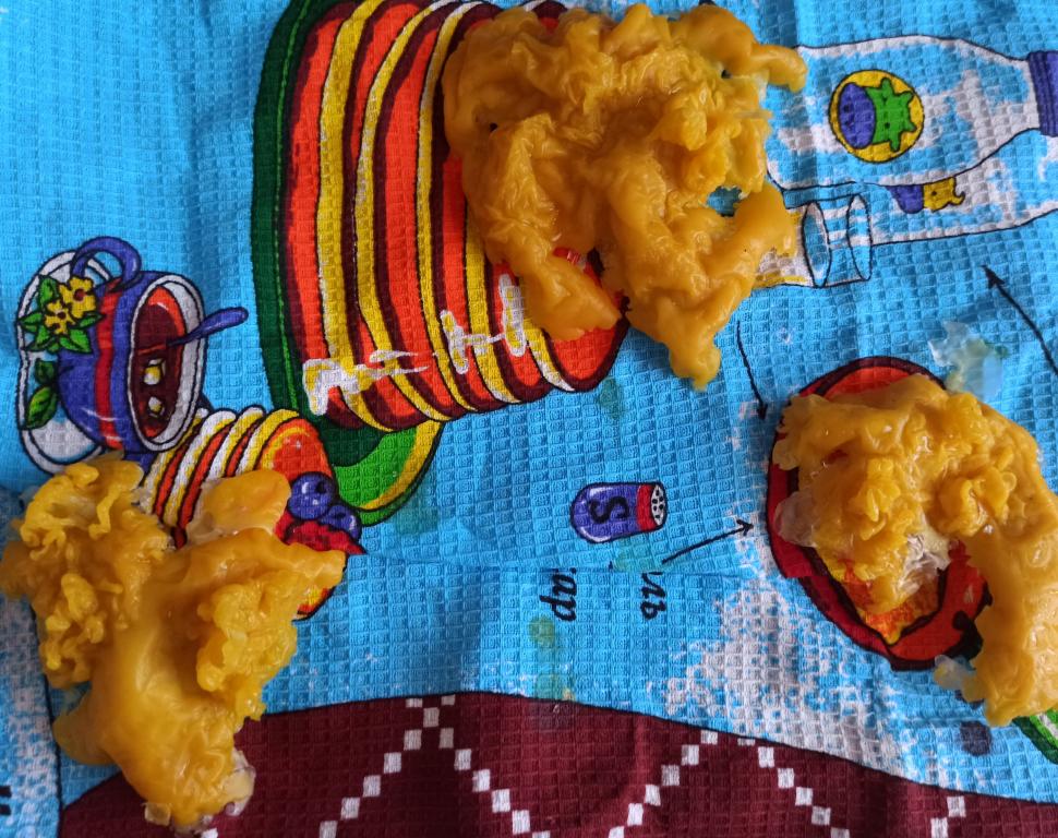добрый вечер, уважаемые практики! продолжаю периодически делать себе отливки; к сожалению, в апреле не отливалась, поэтому в этот раз решила с ножом, при литье воска в воду использовала заговор: "воск выливаю, да ключом его открываю...". на мой взгляд, снова вышел какой-то сущ.