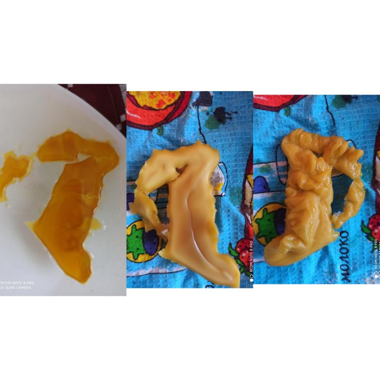 Черные точки на отливке - остатки прополиса, воск не отбеленный.