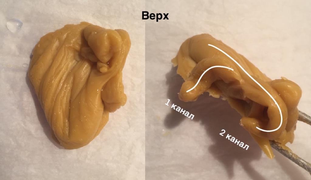 1. Диагностическая отливка перед началом работы. Тут она меня немного озадачила, потому что на ней идёт основной канал(под номером 2) , и из него выходит ещё один канал( под номером 1)🤔