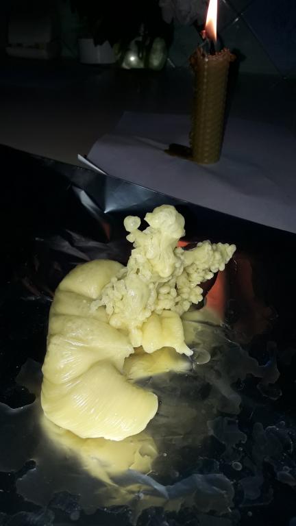 Добрый день, прошу помощи в интерпретации отливки, делала комплекс отливок женщине за 40, практикует временами, вчера хотела закончить, делала отливки через серп, но последняя отливка ввела в тупик, не знаю, как её интерпретировать? отливка полностью в виде спирали...благодарю