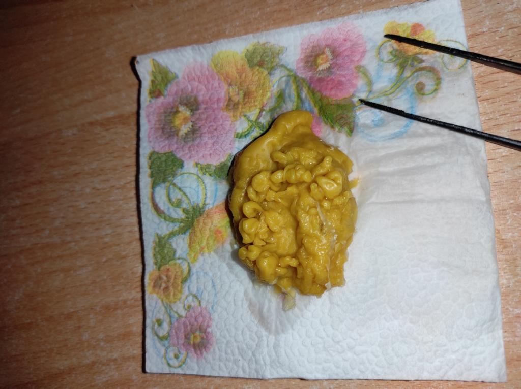 Счищаю, снимаю, в воск отправляю да в нем запираю.