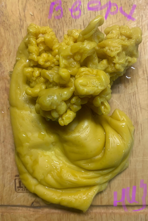 Здравствуйте. Делала диагностическую отливку после чистки. Подскажите , что это может быть на верхних чакрах, так понимаю? Я вижу там канал, могу ошибаться. А вот с нижними чакрами все нормально, по идее. Вверх приблизила и побольше на фоткала. Диагностика на таро и рунах негатив магический отрицает, но вот на воске явно он есть, не могут понять что именно.