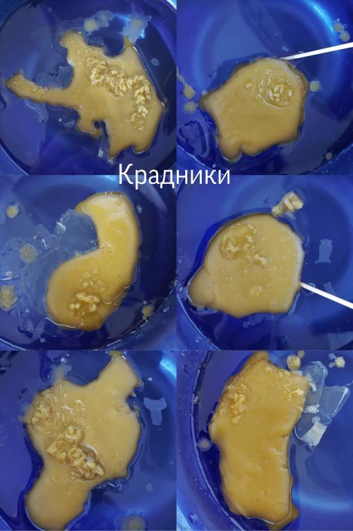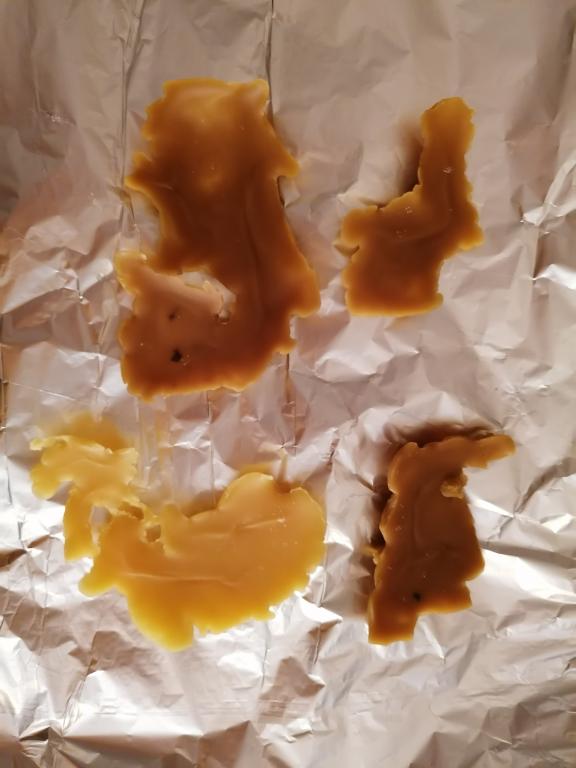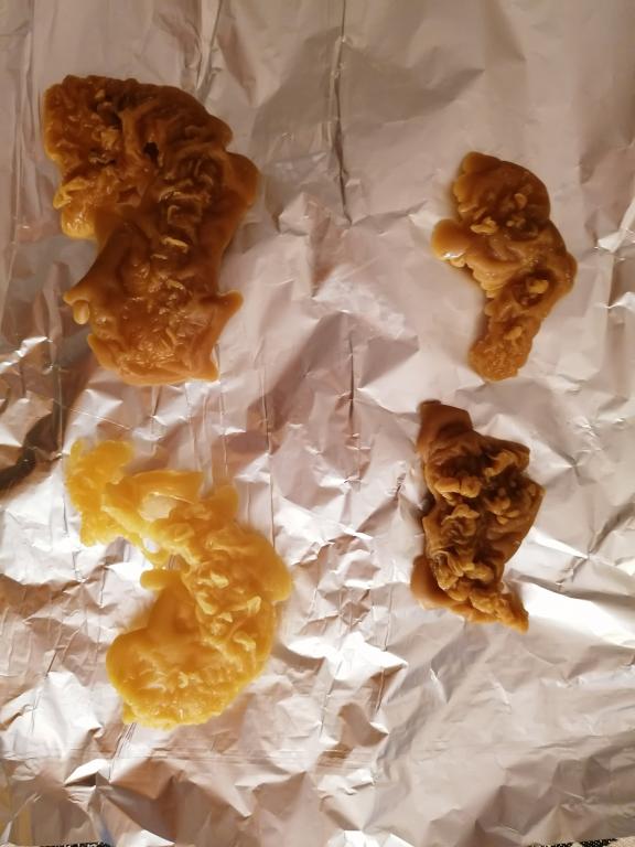 Отливала первой маленькой коричневой отливкой замки. Вроде, не обнаружила на отливке, стала лить крадник и закрытие. И на последних двух узрела закольцовки. А закрытия и крадники, похоже, никак не зацепились. Я так по хвостам и заборам сужу (может, это и не они). И две последние отливки (побольше)  прям одинаковые получились почти.