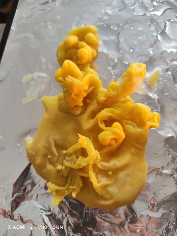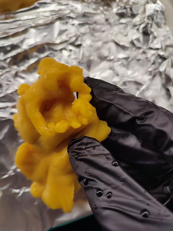 Приветствую!делала сегодня 6 отливок через нож,первые были более-менее,а последние две очень похожи,та,что побольше-самая последняя,вид сверху-она же.Подскажите,пожалуйста,то это за хвосты такие?