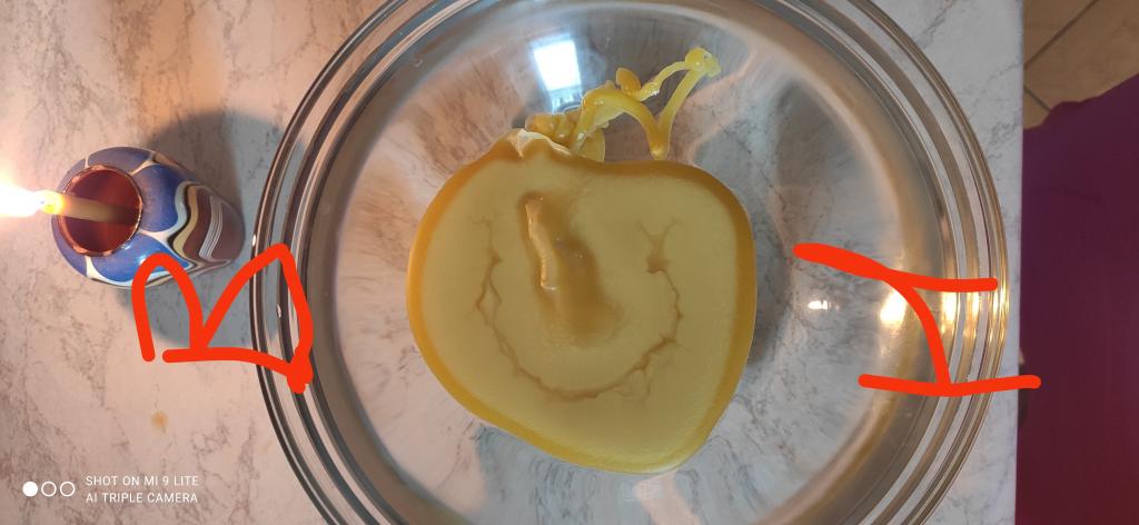 Здравствуйте. Помогите пожалуйста разобраться с трактовкой отливки воском . Диагностика негатива на себе . Отливку переделывала , так как первая перегрела воск . Буду благодарна за помощь.