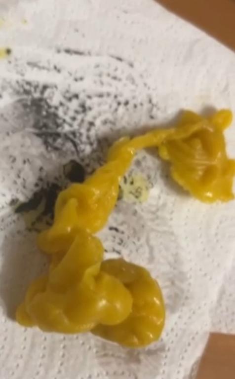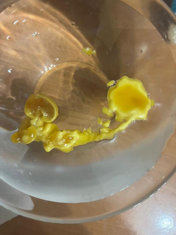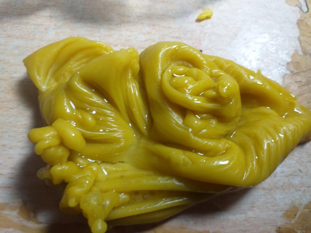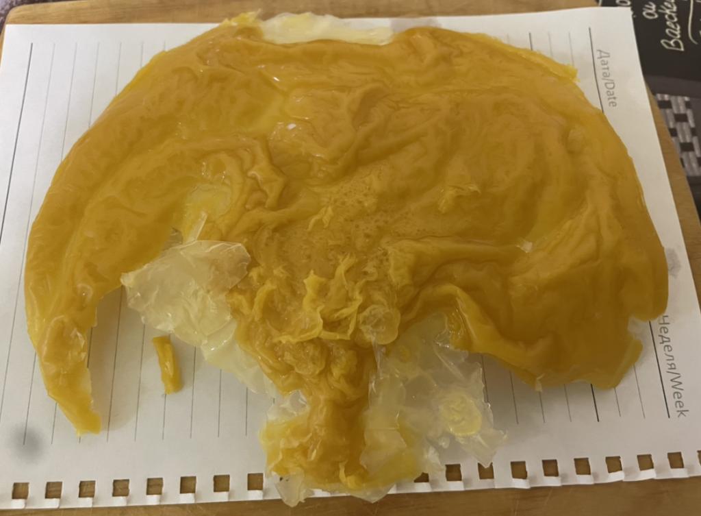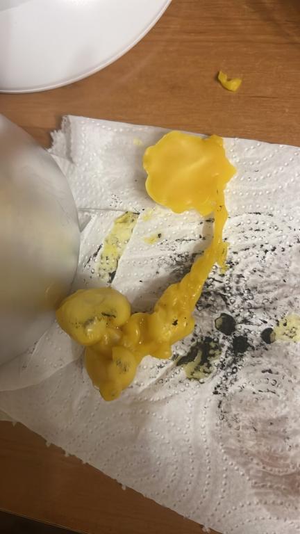 Добрый. Воск перегрели, поэтому вышла лепешка, ничего не видно толком. Лейте когда немного остынет и будет как киселек.