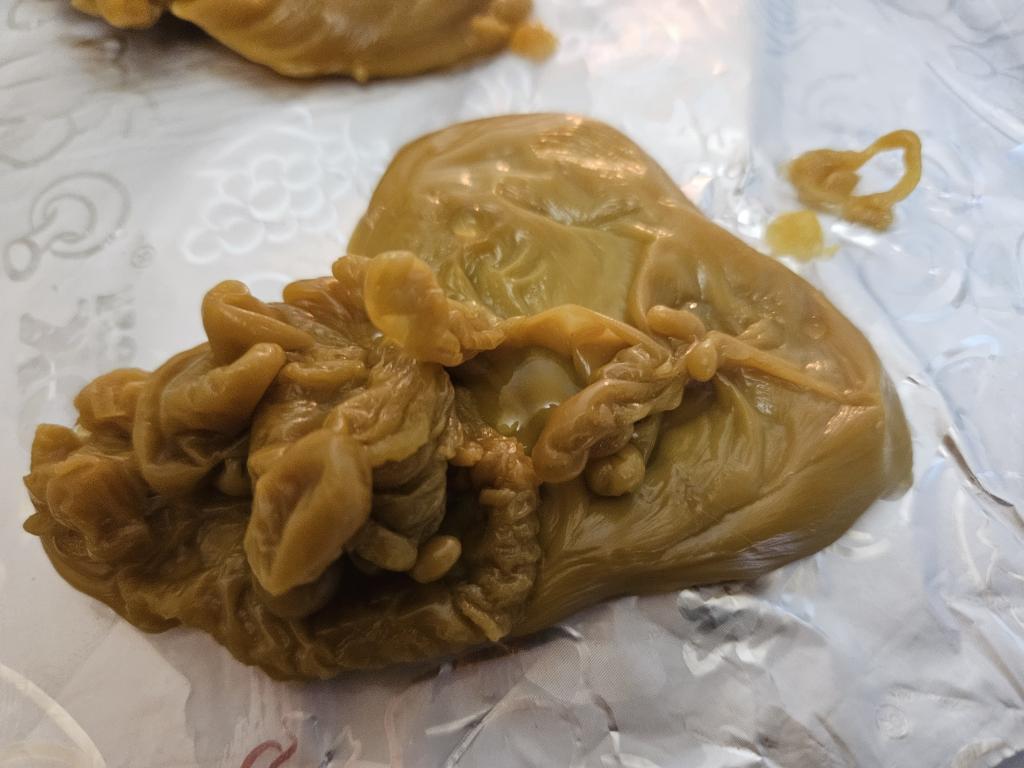 Уважаемый практик, на отливках бывают 2 вида сущей - те что много мелких пупырышек, и те что в вашем случае отлились - они более крупные, но  в основном сущи - это либо мертвяки, либо бесы  - бесов снять обычно сложнее... у вас однозначно сущи, какие не понятно, но склоняюсь к мертвяку, далее приворот у вас отлился , либо работа  что -то из любовной магии