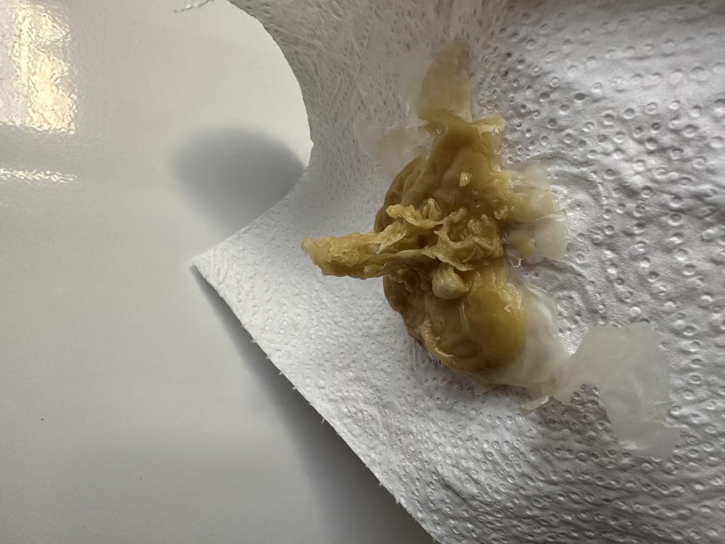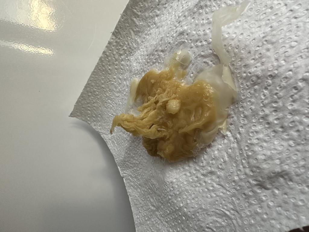 Я еще просто думаю, может защита ракушкой стоит, моё и вылилось. Отливала себя ничего не снимала с себя, ну я считаю, что защиту снимать с себя не нужно.  Не могу вот и понять, что такое вылилось.
