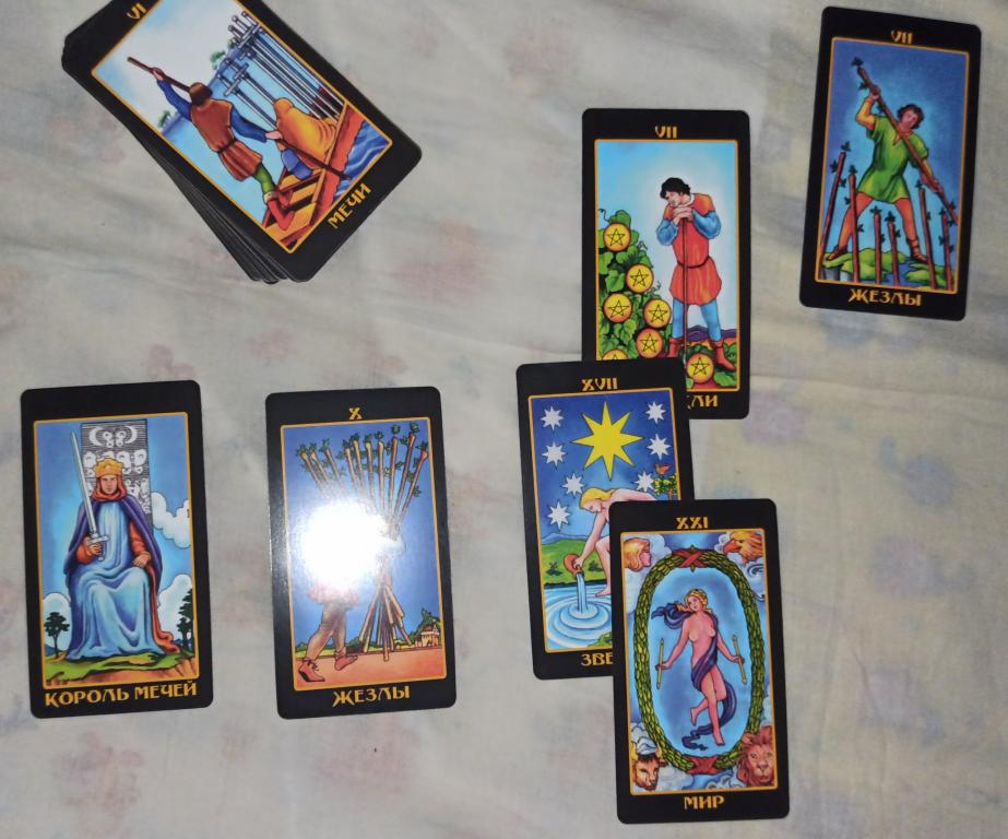 7 пентаклей-10 пентаклей- Колесо судьбы(3 мечей) итог- Королева кубков.