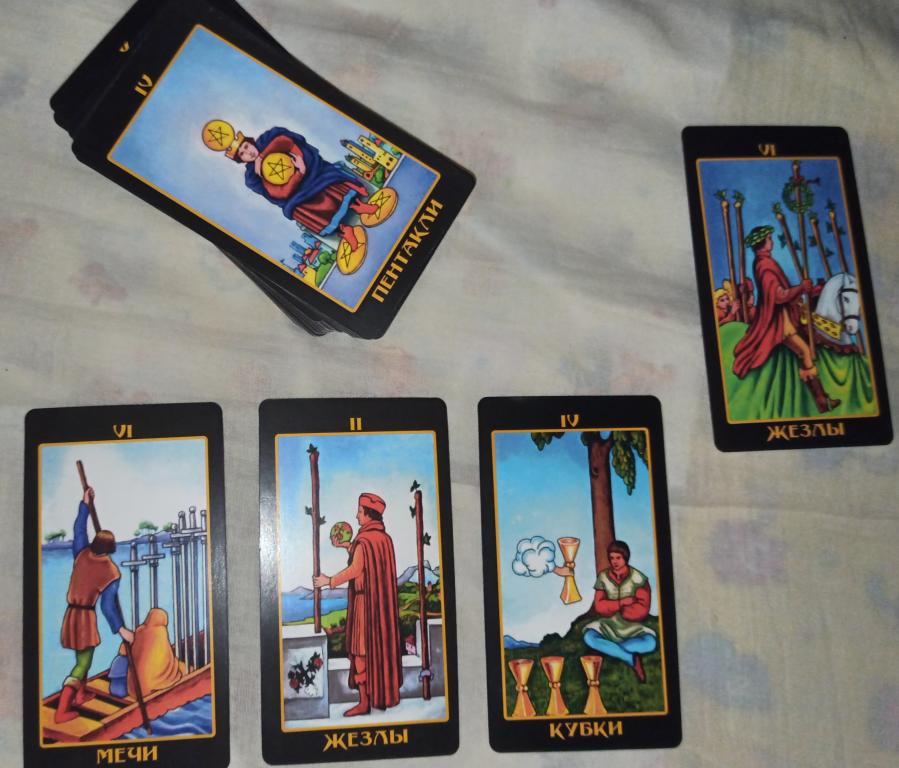 6 пентакли - рыцарь пентакли - три пентакли - 4 пентакли