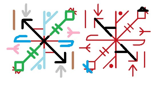 Здравствуйте. Что сверху у ромбиков æsingur? и где искать Турс и Каун? В порунном описании будто чего-то не хватает.