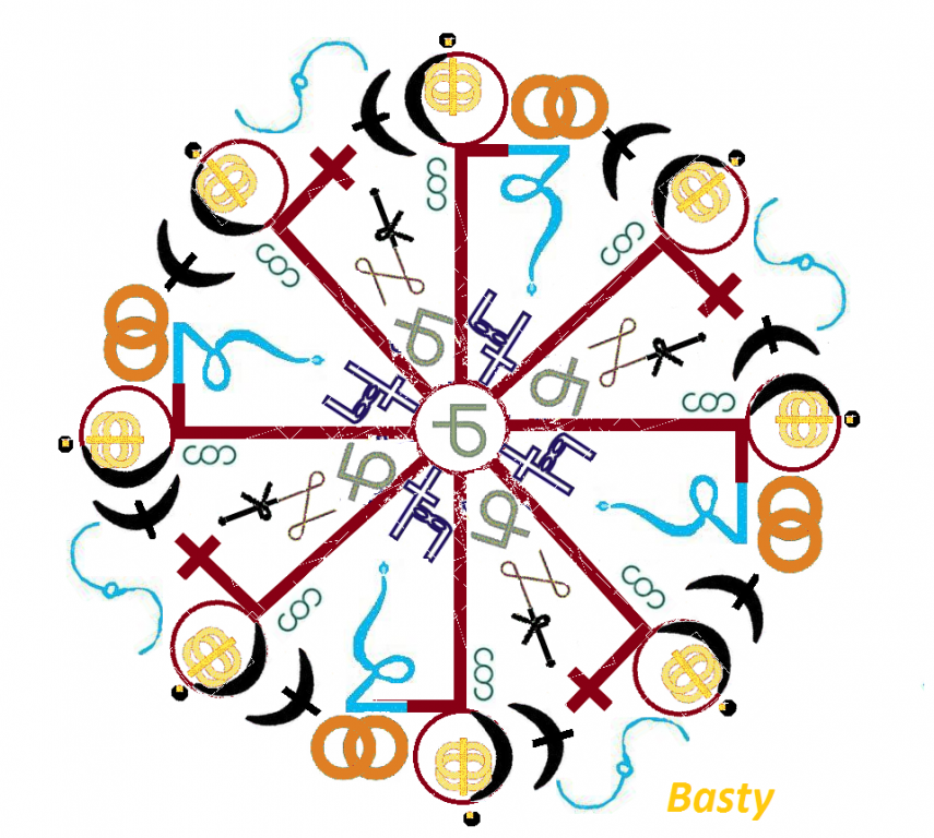 Ув Basty благодарю что выложили, а тут задачу примерно давать: вернуть покраденное, то бишь блага,энегрию, возможности?В том числе украденное родовыми крадниками?  И там на картинке шершавенько бордовые символы, их прорисовать все, правильно,забить пробелы? и где точки сверху по периметру,над кругами с полумесяцами,  маленькие, там   на черный заходит точка желтая, там забить просто одним цветом? один сплошной кружок?
