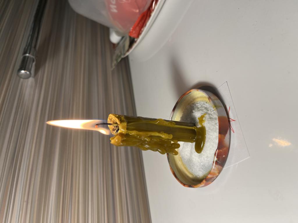 Здравствуйте, поставила бомбу, сегодня второй день, действительно тошноты и легкое головокружение волнами (прием кофе прям контролирует🤭),ножки переодически дают о себе знать-икры в основном и щиколотка, в оговоре заключила от закрытия дорог и соц сферы, болезни, родовой негатив, свечу поставила в первый день сначала церковную оговорила как диагностика, потом сразу парафин, также и сегодня. Свеча сразу начала плакать, парафин пару полосок, сегодня такая же история, прилагаю фото, подскажите, пжл, что-то надо добавлять, буду очень признательна! До этого снимала закрытие, на диагностики одно и тоже, сначала  все ок, потом также картина. фото первого дня [/img]прилагаю
