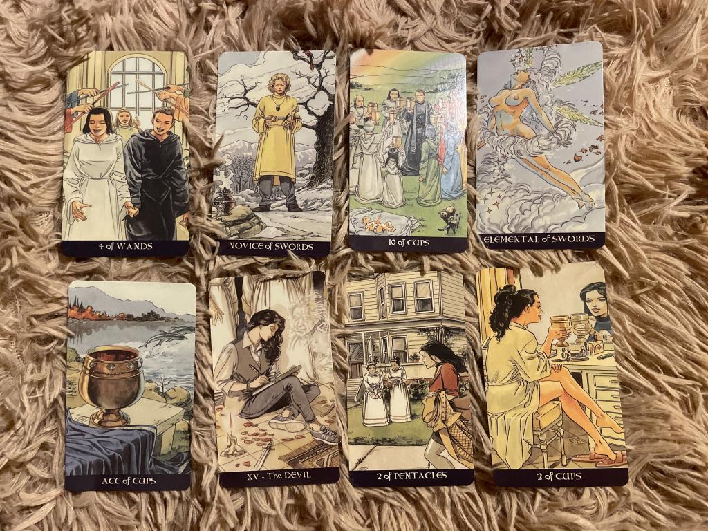 Следующие карты подчеркивают что да, есть влияние людей, социума, но обычное, не магическое. Эмоциональные проблемы, высокая чувствительность и впечатлительность мешают жить и приводят энергетику и всю в жизнь в дисбаланс. Тут и магии не нужно, человек сам справляется с создаванием себе проблем.