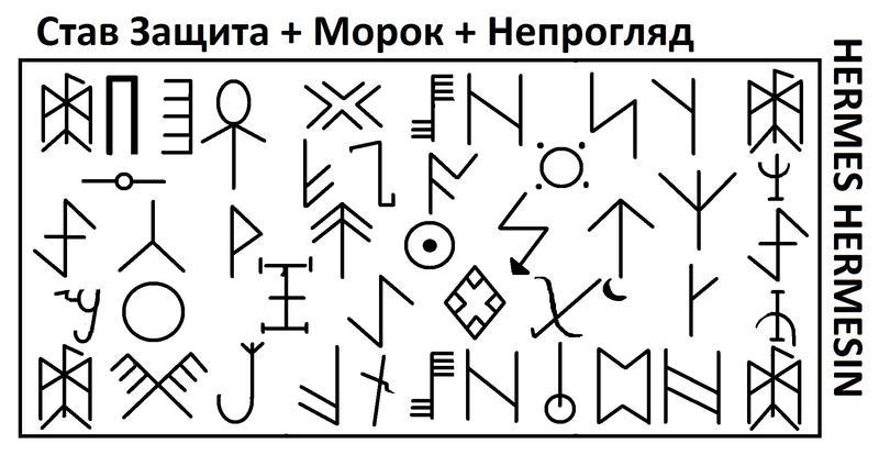Пусть будет сотворён став Защита + Морок + Непрогляд; который будет непроглядом, защитой и мороком; будет защищать меня высшими силами; маскировать магические воздействия; будет защитой от просмотров;приманкой, и оружием против моих врагов; будет предупреждать о защите; будет наводить различный морок; будет защитой от любых просмотров; защищать от губительного воздействия психических, материальных, или любых других разрушительных сил; будет оберегом, и защитником во всех моих магических ритуалах; я буду использовать его в волшбе, и он будет оружием защиты, который будет защищать легко и светло.