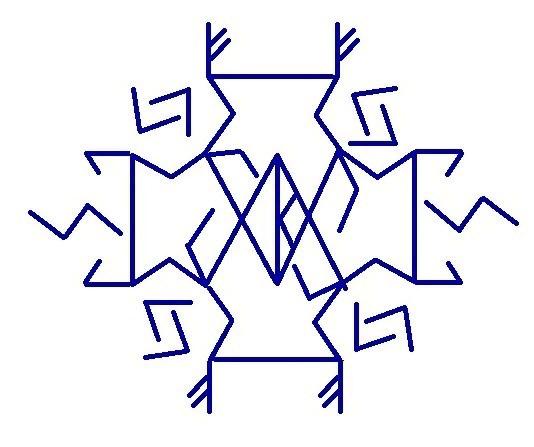 Центр вязи – зерно (ингуз), которое стимулируют расти верх, как изнутри (беркана), так и внешне (4 уруза). Зерно находится в земле (4 перта), оно окружено силой земли, ее возможностями и направляется вверх, получая с водой (4 лагуза) все, что необходимо для роста и солнце (2 соулу), которое тоже нужно для роста. Весь рост выливается в урожай (4 феу), но не просто урожай, а тот урожай, который вы заслужили, вкладывая силы, средства и душу в сады и огороды.