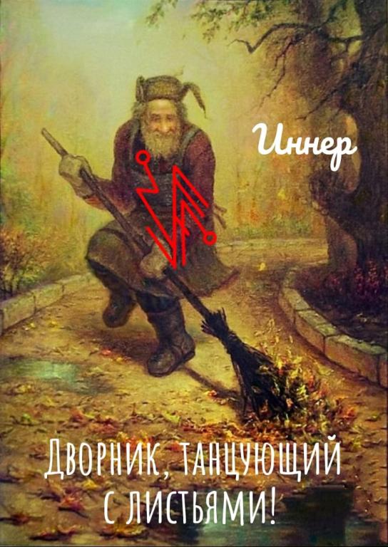 Дворник, танцующий с листьями! Автор inner