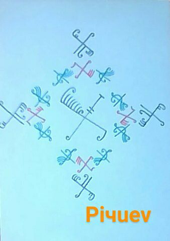 Запрещенный талисман славянский "На богатство от рода!" Глифоруны Кощея или Костей, нанести на ткань или лист, одымить базиликом, по часовой стрелке пишем текст на деньги в свободной форме, например: