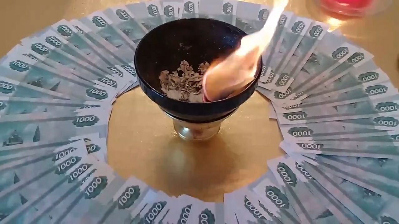 На 7 листов нанести глиф 1 (притянуть быстро деньги), внизу подписать необходимую сумму. Каждый лист с глифом окурить корицей, сжечь в кадильнице, пепел выкинуть в окно. Сумма приходит в течение дня.