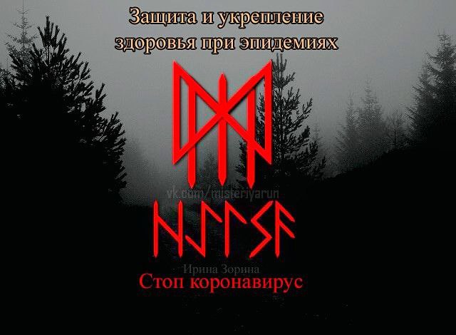 "Пусть силой рун этот став защищает меня от..., предотвращая попадание вирусов (инфекций и т.п. нужное перечислить) в мой организм и ограждая меня от болезни. Став не позволяет инфекции проникнуть в мое тело, укрепляет мой иммунитет и повышает защитные силы организма, отражая удары вирусов и укрепляя мое здоровье..."