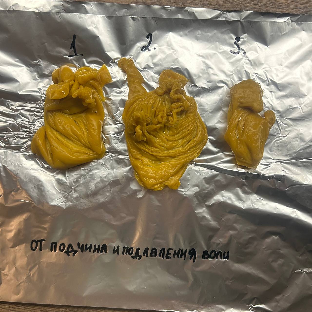 Льете чередуя низ верх( голова— ноги) и так три дня. Минимум отливок 7 за день. Воск в землю в мусорку или на кладбище прикопать , на ваше усмотрение. Пробуйте где отклик будет лучше. И конечно не переплавляем.