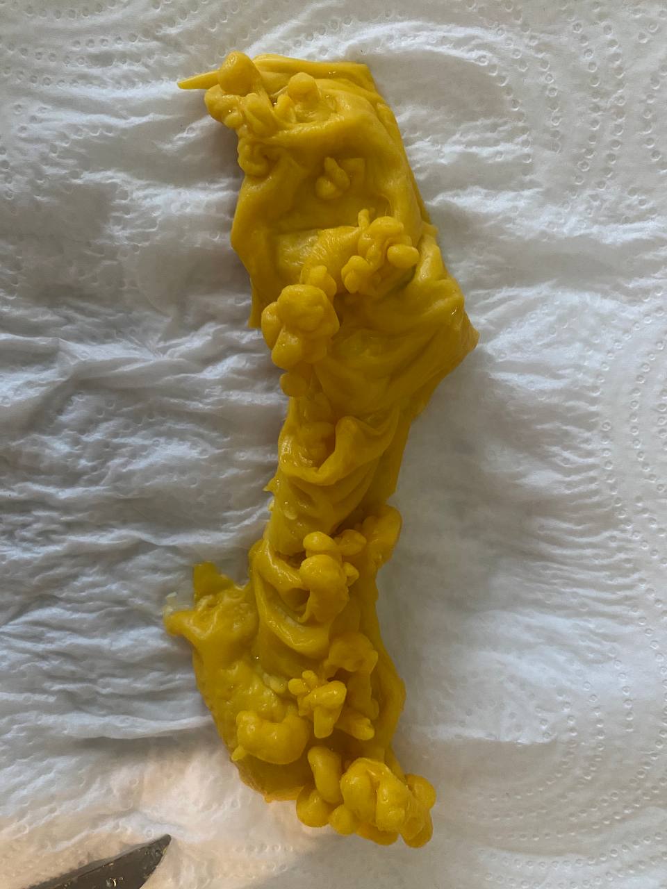 Уважаемые практики, делала себе отливки с заговором "снимаю слова лихие " , три раза. На первой отливке отлился как "хобот" если это канал, то очень широкий( и идёт как бы отдельно, прижат к основному "телу"
