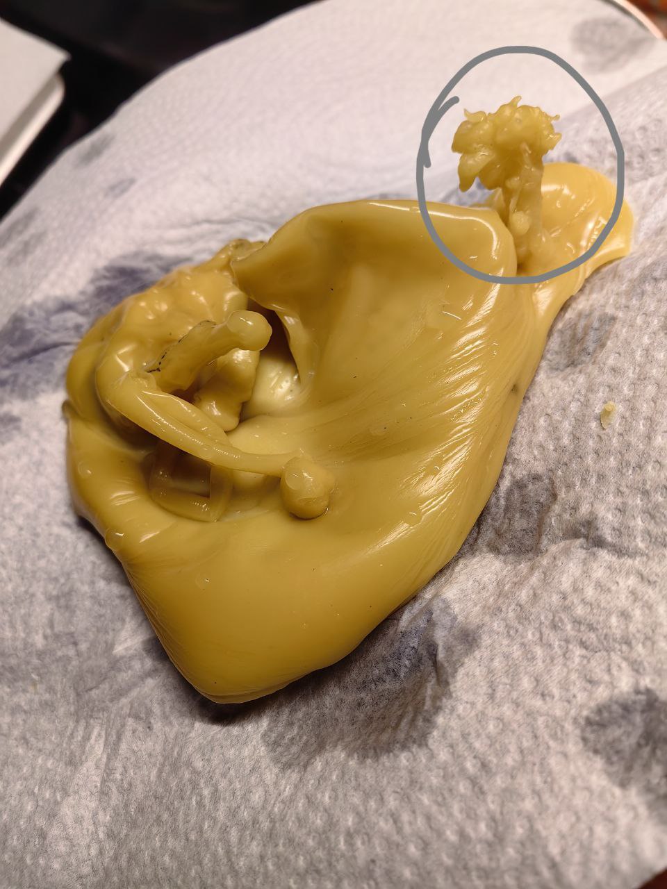 Добрый вечер, уважаемые практики! Спасибо за помощь и советы. Помогите, пожалуйста, разобраться: вчера использовала заговор от печатей https://chernayamagiya.com/forum/index.php/topic,52049.msg2621158.html#msg2621158. Как только стала лить воск на нож, в кладовке свалилась какая-то посудина. Было жутковато, но вот что отлилось: