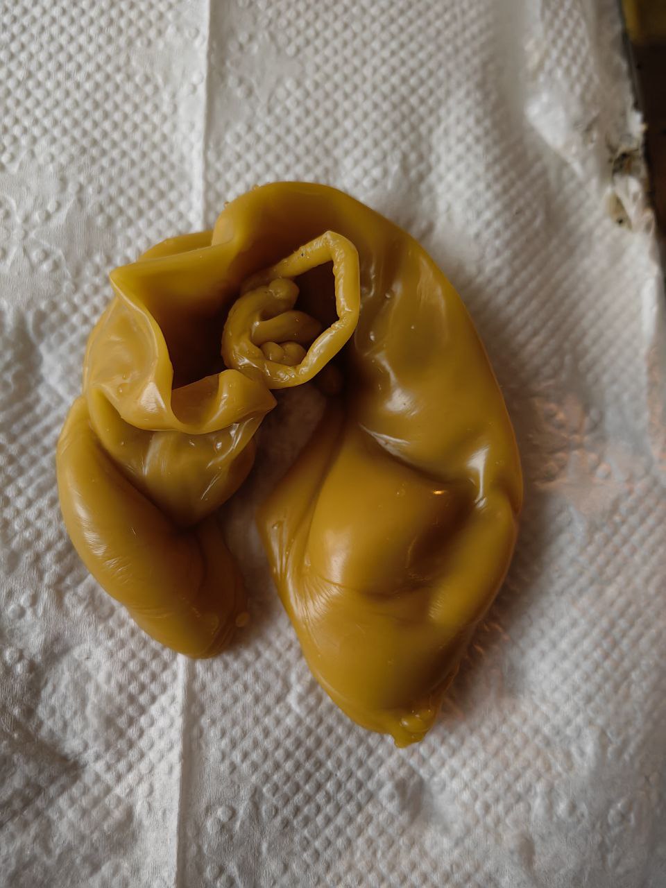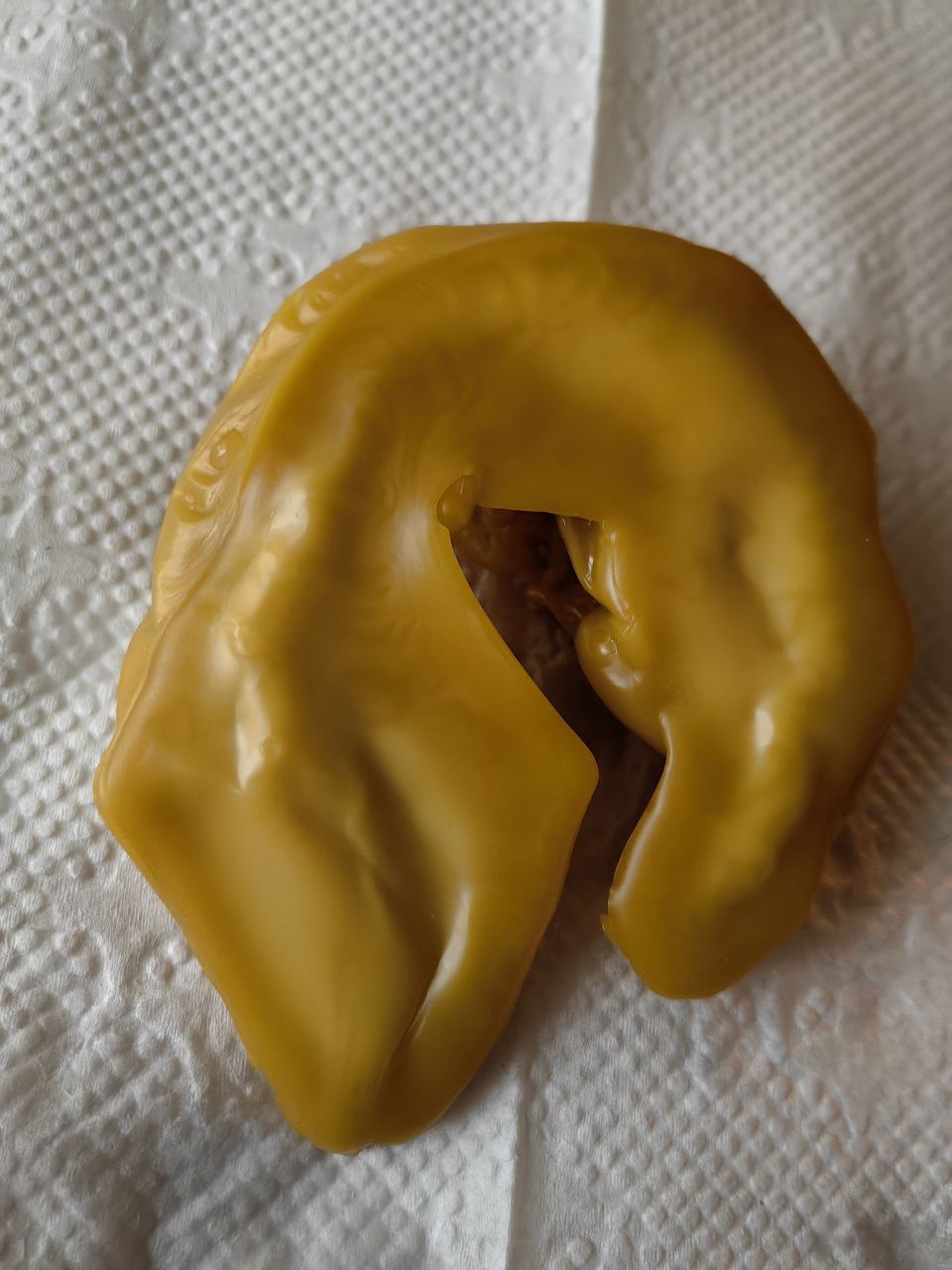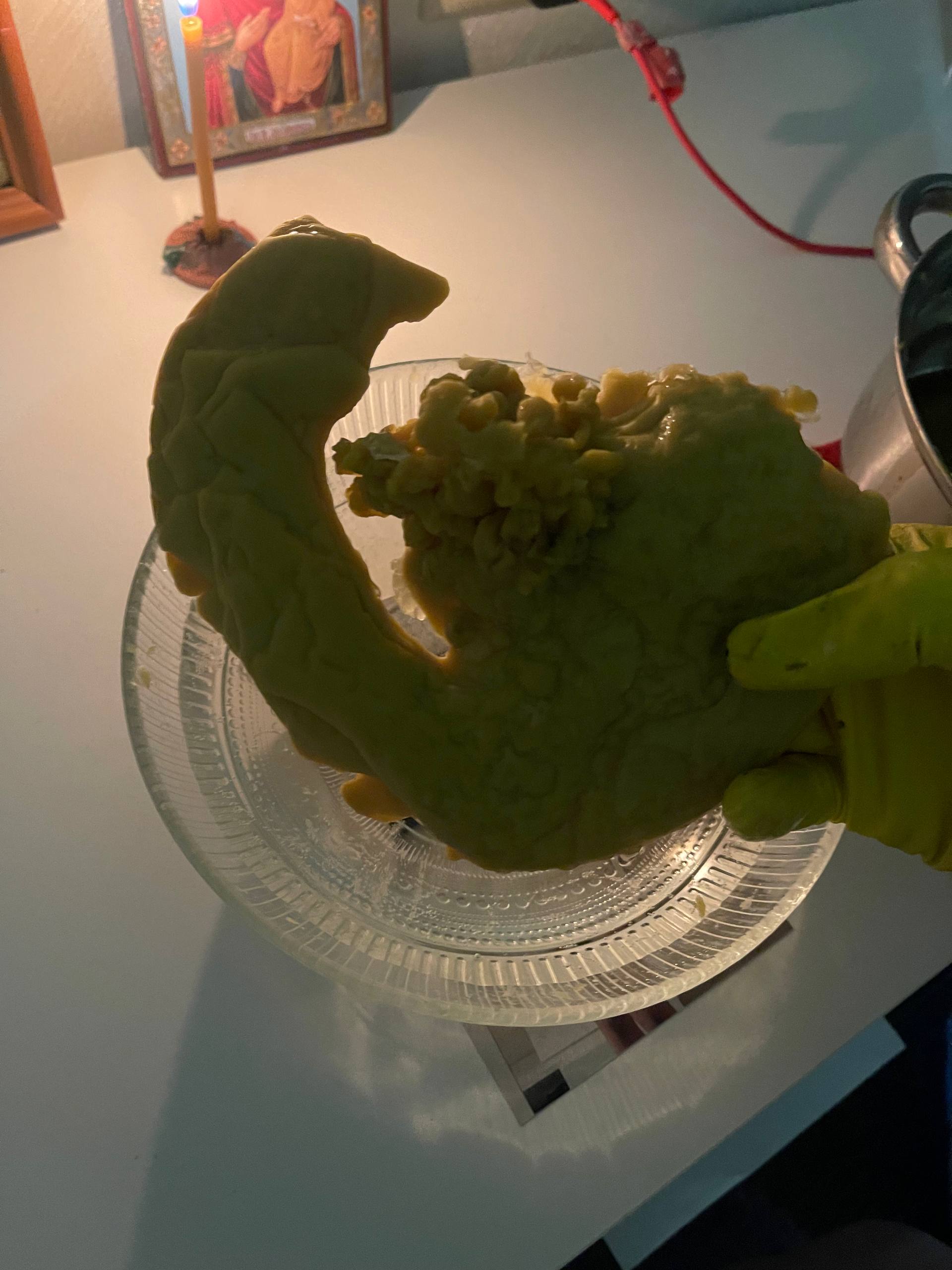 Честно, испугалась, не знаю от чего такая реакция, видимо надеялась на отсутствие его☺ Я его от испуга, злости и разочарования раскаленным ножом всего изрезала, тоже не понятная реакция🙈 Из 18 отливок, примерно 11 штук вышло бесов. До первого беса 6 отливок на снятие замков были практически чистые, в отличии от прежних гор сталактитов прилипающих ко дну. Каждая отливка по 100гр. воска и всегда только новый воск. Каждый заговор 3 раза, редко некоторые 6 раз.
