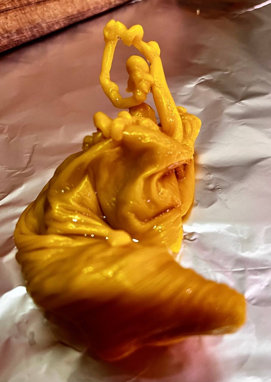 И последним этапом обрывала каналы. Использовала заговор про вора на жидкий воск + заговор на срез привязок, когда лила на нож. На этой отливке меня прям до мурашек пробрало. Но получилась, почему-то, маленькая версия моей первой диагностичной - с сущностью прям внутри.(