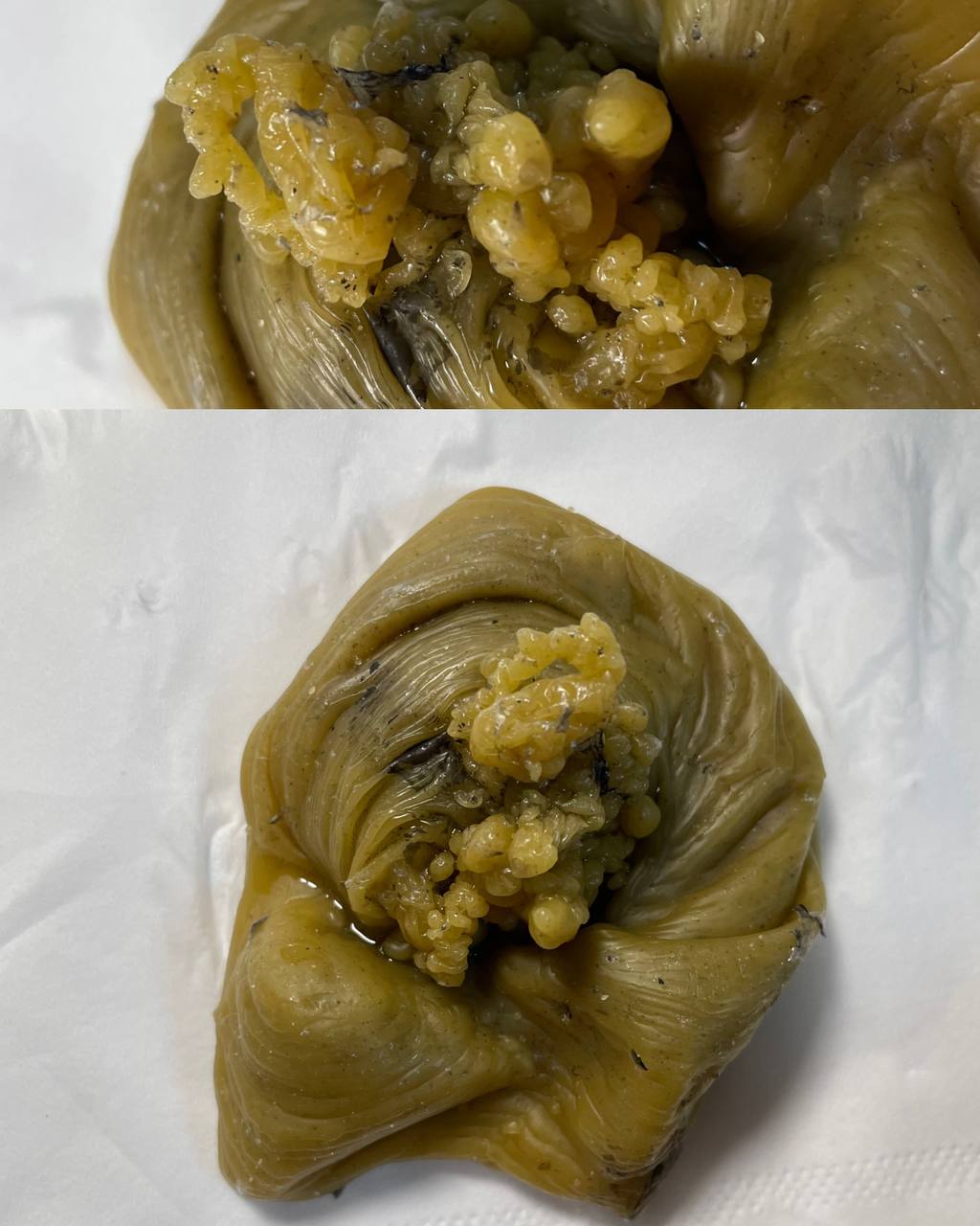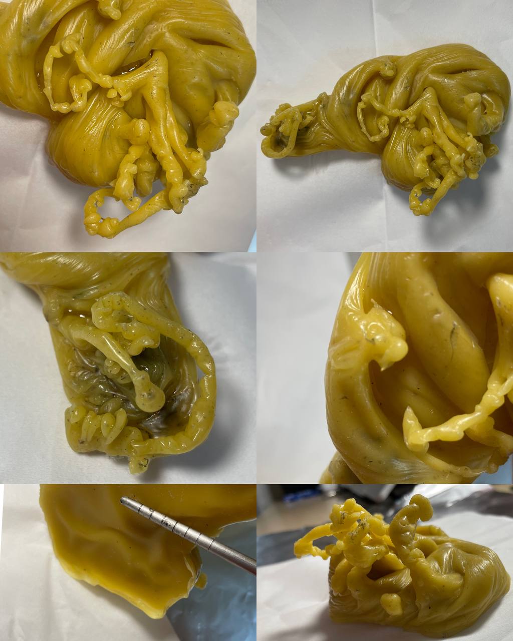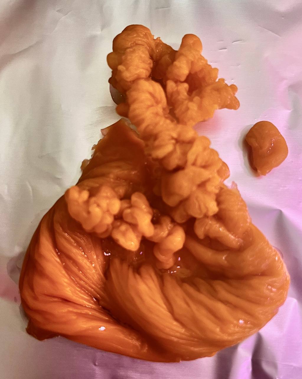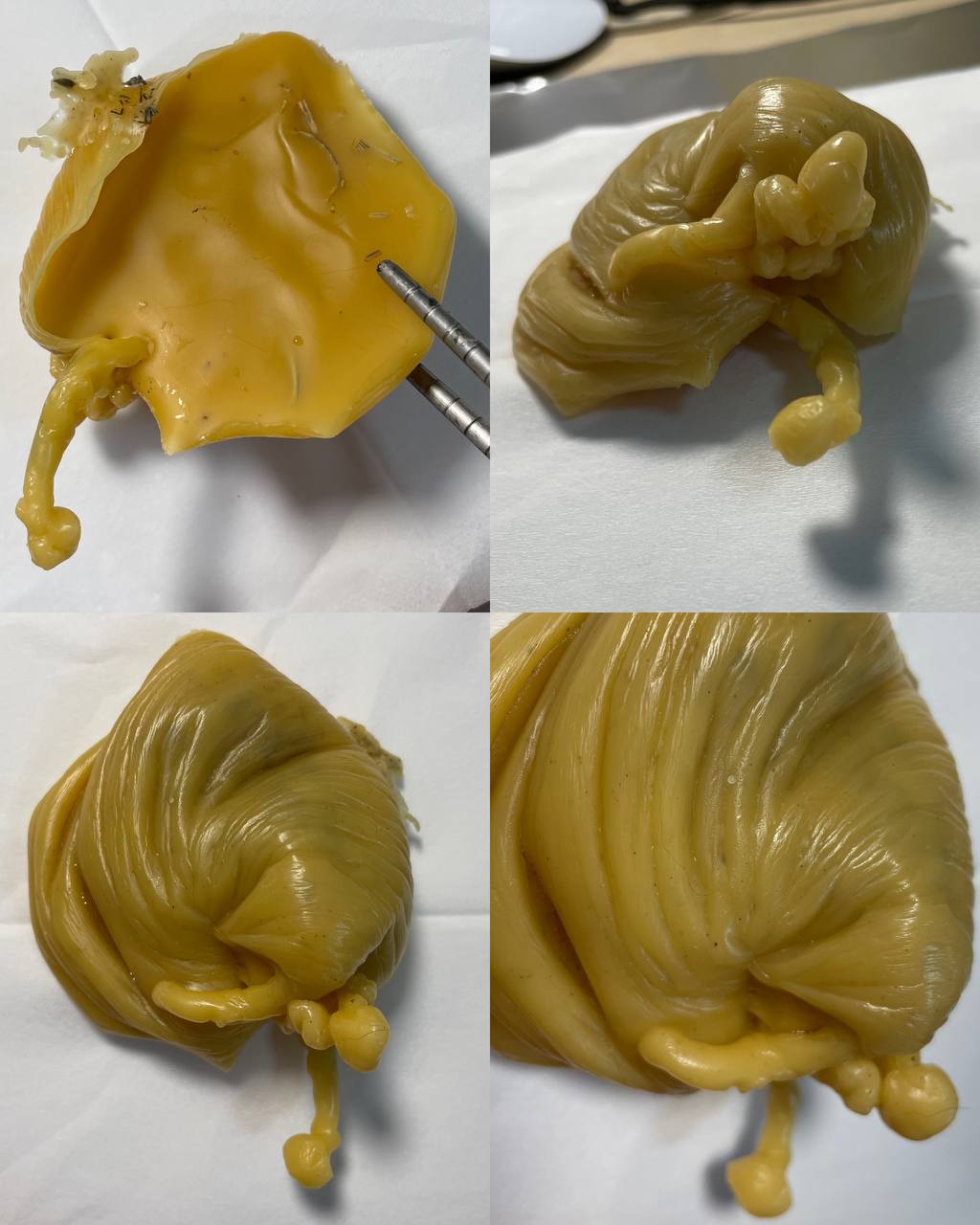 Делала сегодня себе диагностические отливки негатива, заговор стандартный из этого форума. Первая довольно рваная, но наверное из-за перегретого воска, а вот вторая очень странная. Я такого на себе еще не видела.