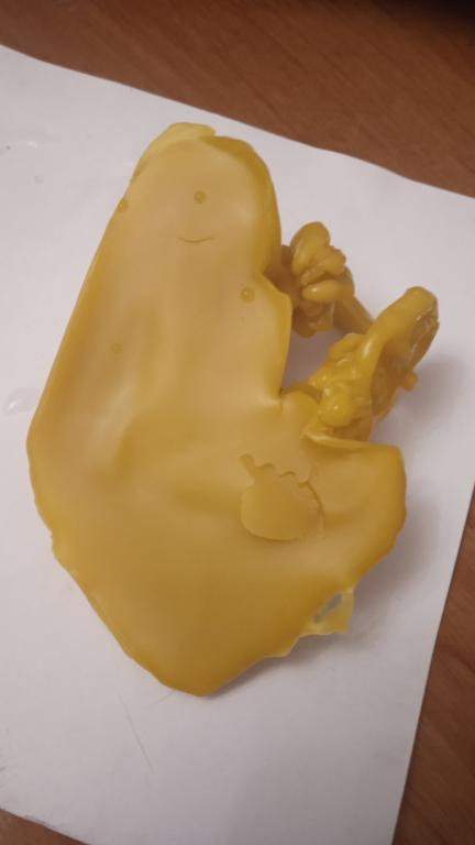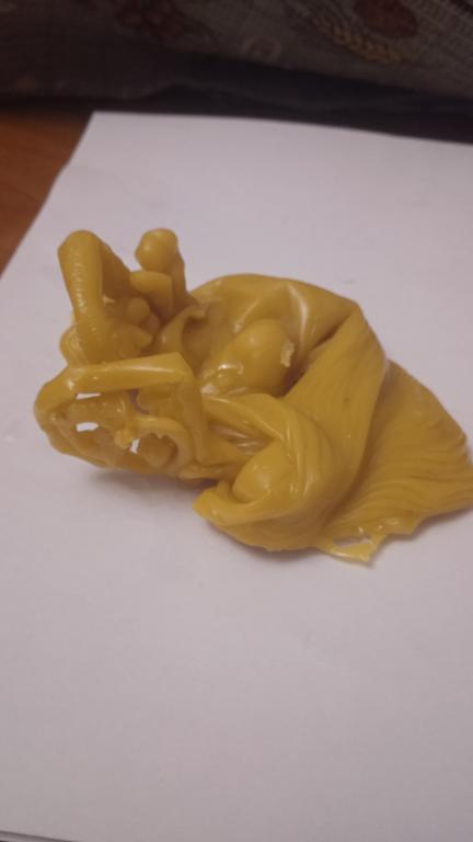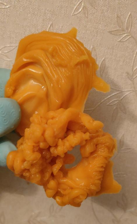 Последний блин и меня порадовал бы, если бы не одно но... Дело в том, что так отливается воском то, чего нет или заговор работает не в том направлении, то бишь неправильно подобран. Но тем не менее на отливке имеются признаки приглушенного существа и оно очень подавлено.