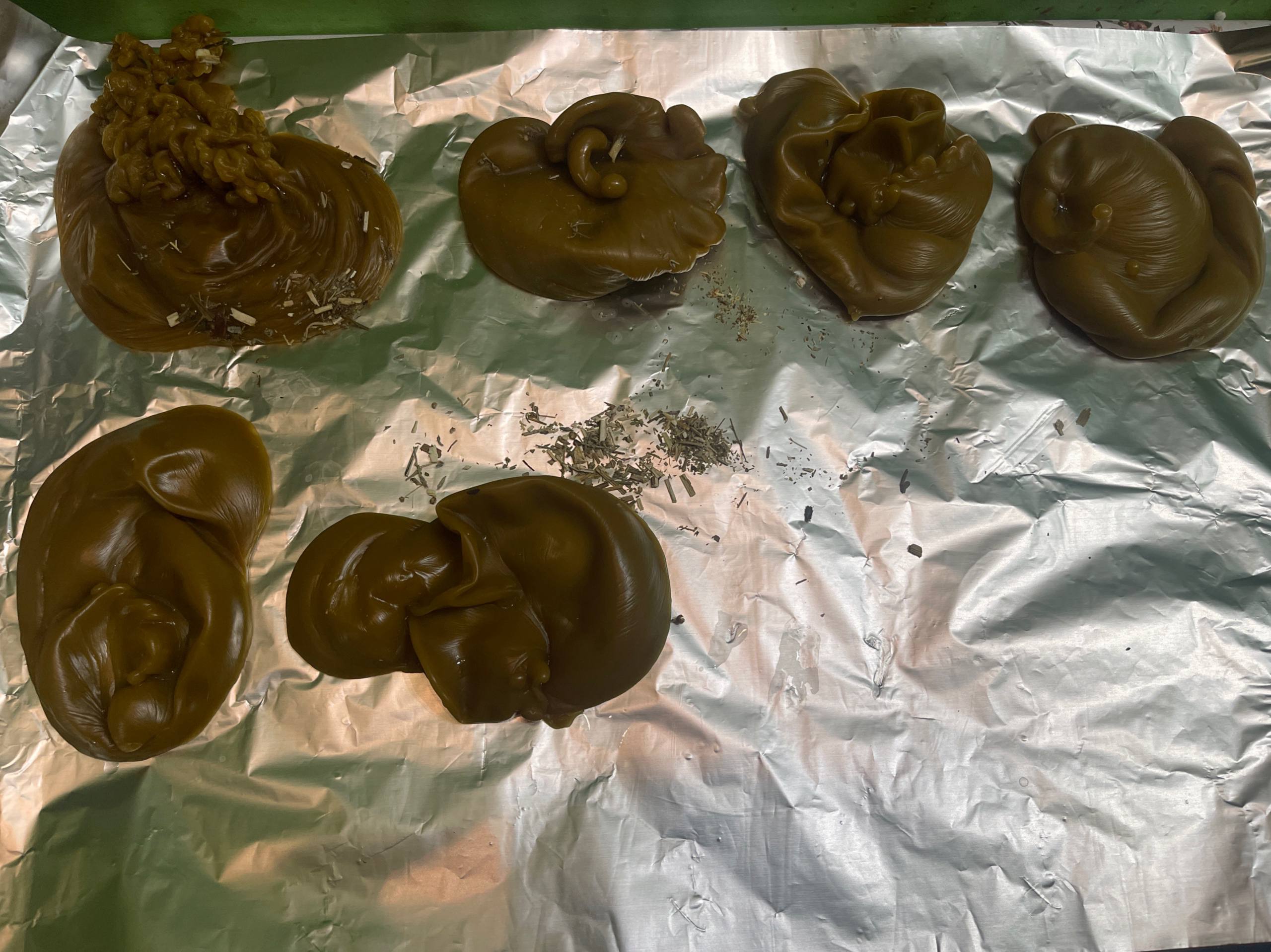 Добрый вечер, милые и уважаемые практики. Помогите расшифровать отливки. Первые две диагностика. Остальные отливала на нож. Есть результат? Почему воск треснул и так плотно струйкой вылился.
