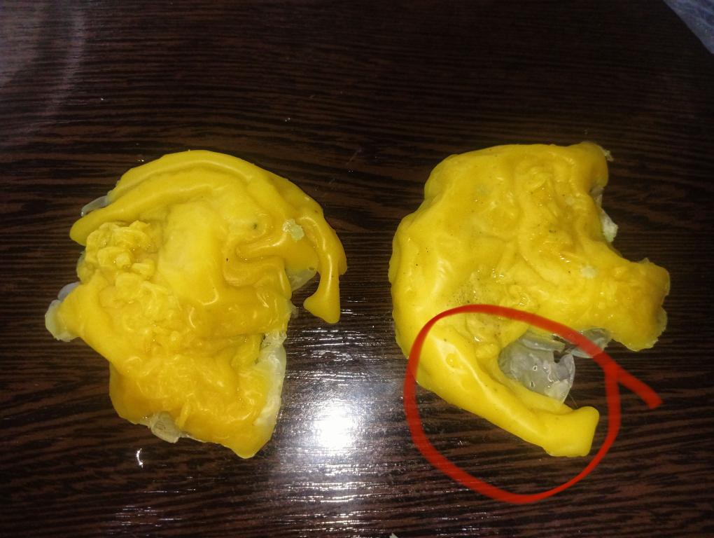 справа от отворота ( на отливках ранее были и волны и шишечки, сейчас их нет. НО смущает внизу отделившийся воск. Такое есть на всех отливках.
