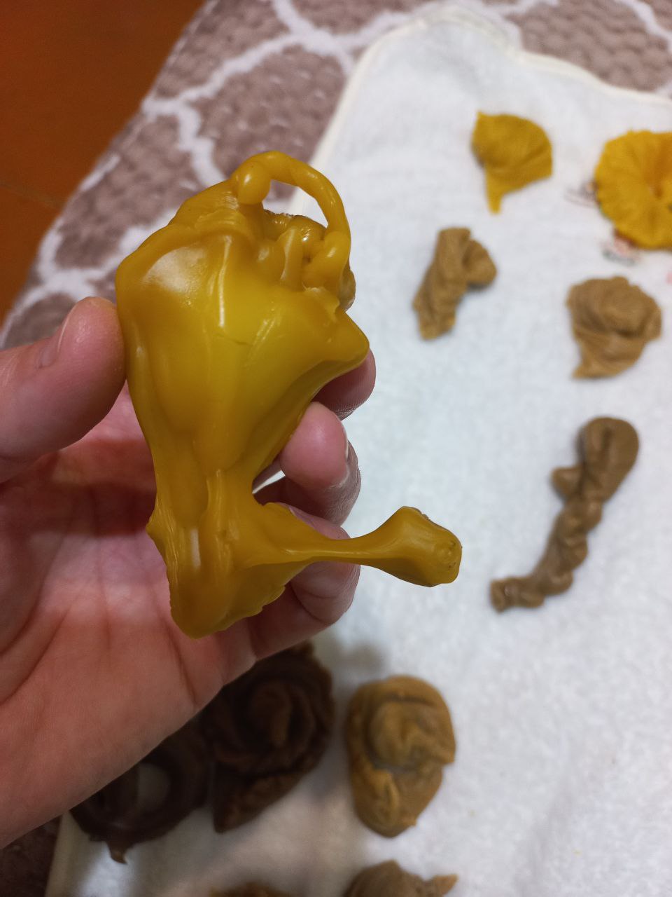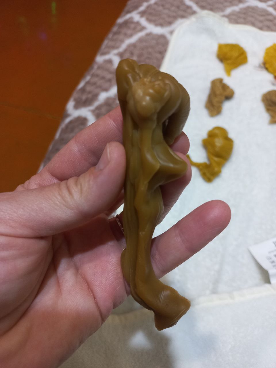 Сделала диагностическую отливку на мужчину, поставила при начале работы свечу, треск стоял от нее, а когда начала отливать воск фитиль загнулся в кольцо.