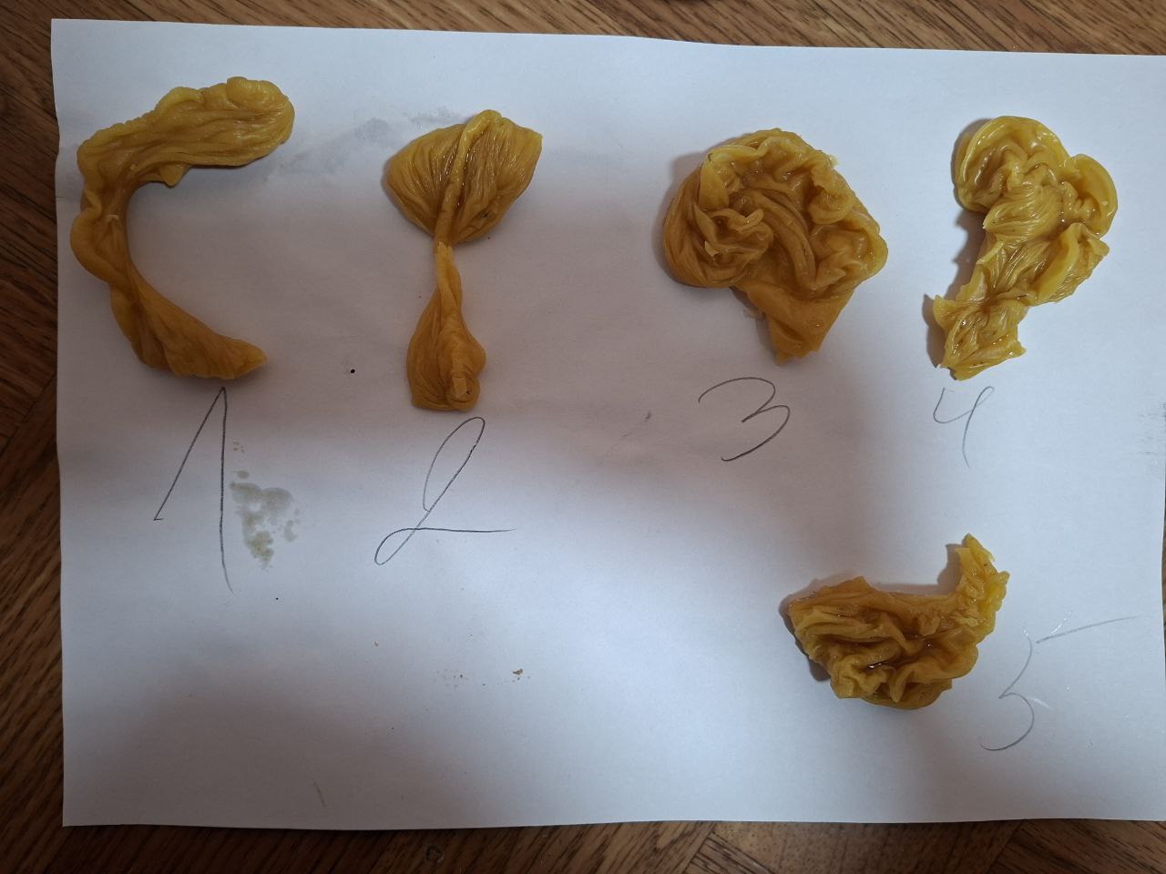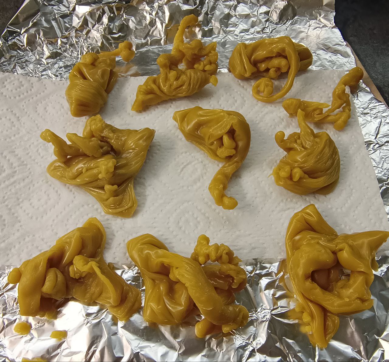 Уважаемый CVADROMAG, спасибо за ответ, советы и поддержку. Как Вы посоветовали сделала комплекс и восковых отливок ( 3 дня по 3 раза): отливала от подселеного беса, так же добавила от морока и непрогляд. Почувствовала выгорание (отливки+работа и домашние дела), сделала перерыв + необходимо было запастись воском на будущее. Физически я восстановилась, но вот думая о дальнейшей работе я, по ощущениям, уперлась в стену: куда двигаться, какой план, ну темный лес. Перво на первом надо были делать диагностику, но куда там-темный лес... и, вот решила я начать работу с отливки морока (ниже фото 9 сегодняшних отливок). Отливала через серп и с призывом Архангела Михаила, заговор от морока Д. Вронского. Первые три отливки меня жутко крутило, было тяжело читать оговор, после девятой я почувствовала прилив сил. Пожалуйста, посмотрите мои отливки, буду благодарна за Ваши рекомендации в каком направлении двигаться дальше, советы, журения... Благоларю...