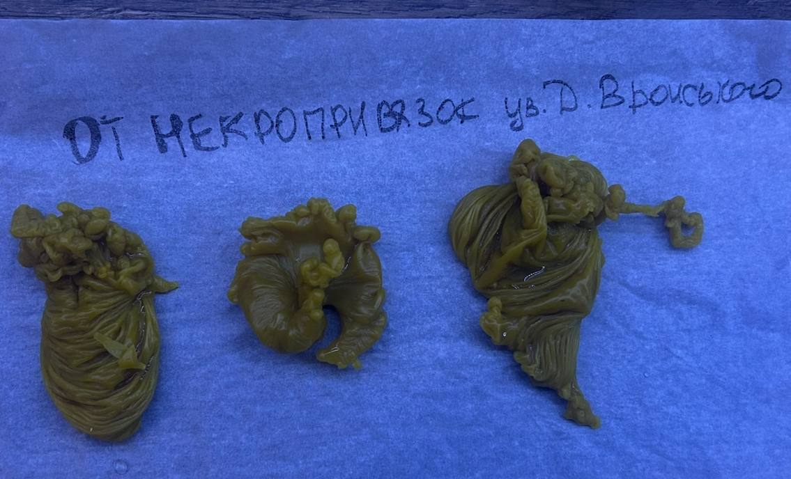 Также при отливании некропривязки выливается корона на голове. На отлив блоков и закрытий отливка в виде ступни (следа) вышла.