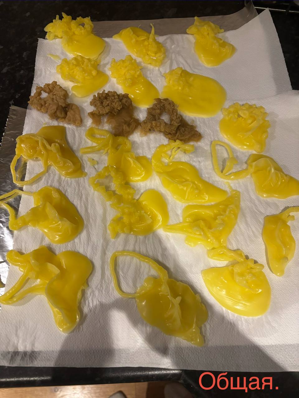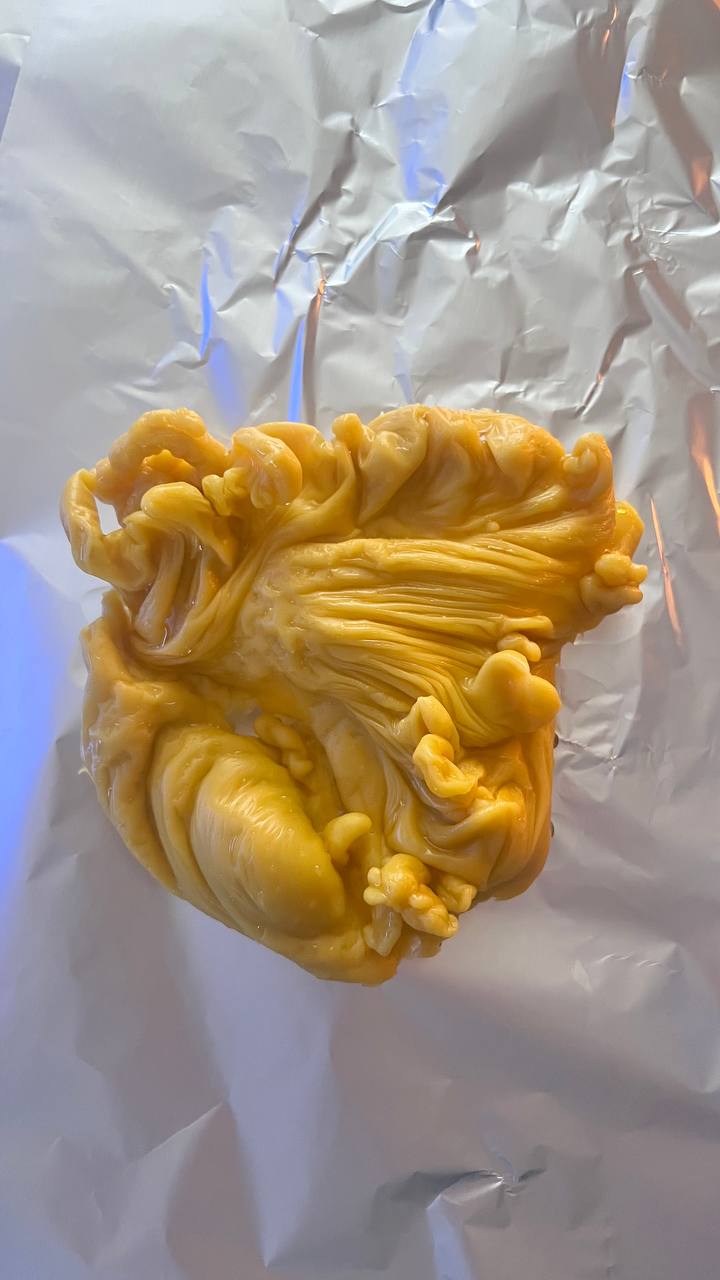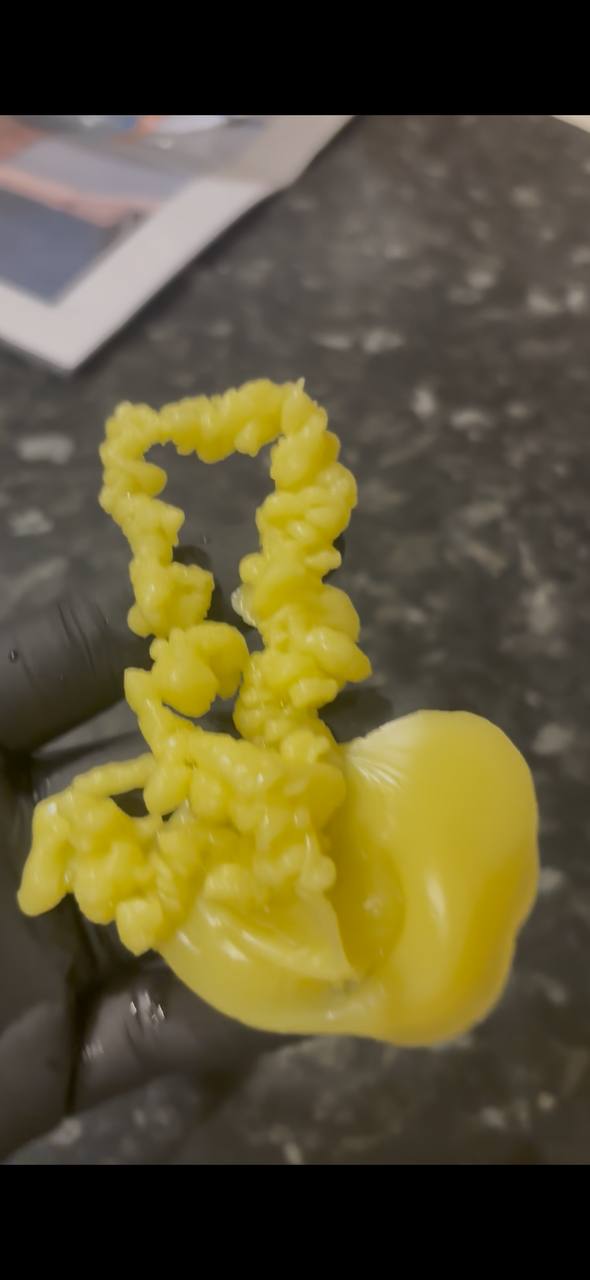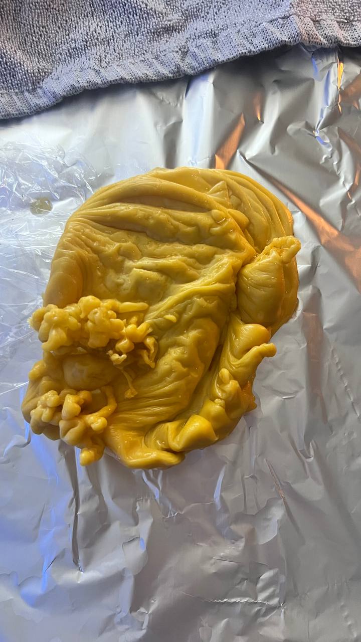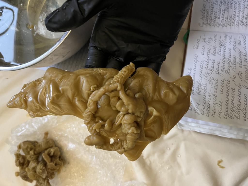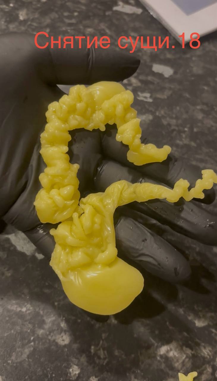 На девушке сущь, которая перекрывает ей дороги. Дополнительно жрёт её (девушка болеет) и морочит. Хитрая и вёрткая, воюю уже некоторое время. Сняла замки. Начала отливать саму сущь. Постоянно выходила в виде скоплений шишечек. Сменила заговор и появились жгуты с небольшими воланами. Не могу понять, я сняла её или нет? Что это за жгуты? Ранее постоянно отливались шишечки,целые «короны» из них(видно на общей, в начале).  А после появления жгутов они появляются, но очень редко. Может сменить заговор?