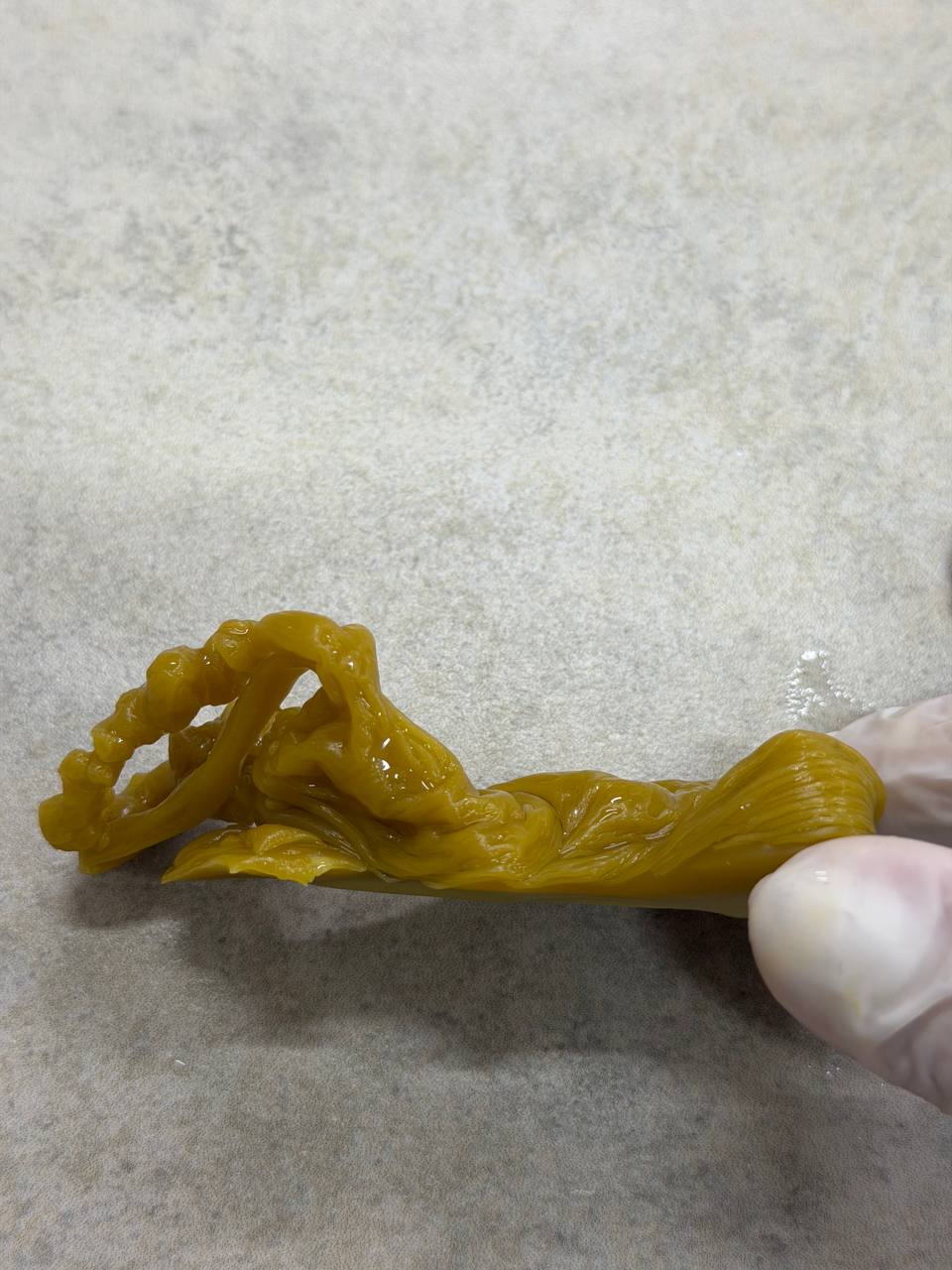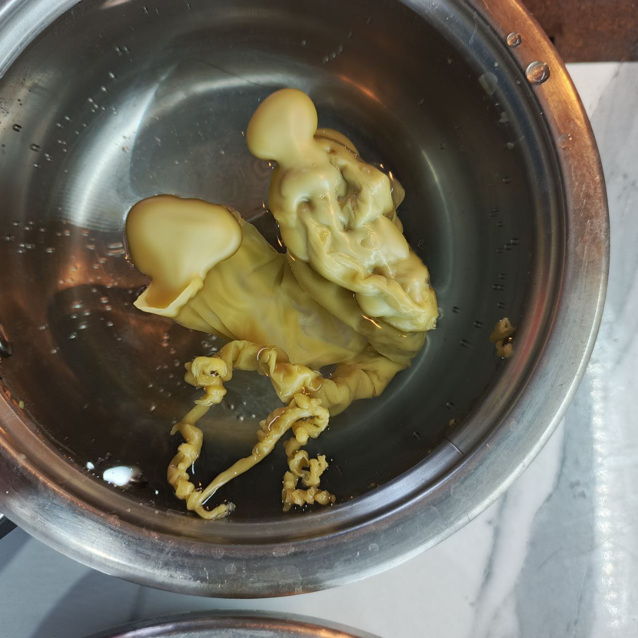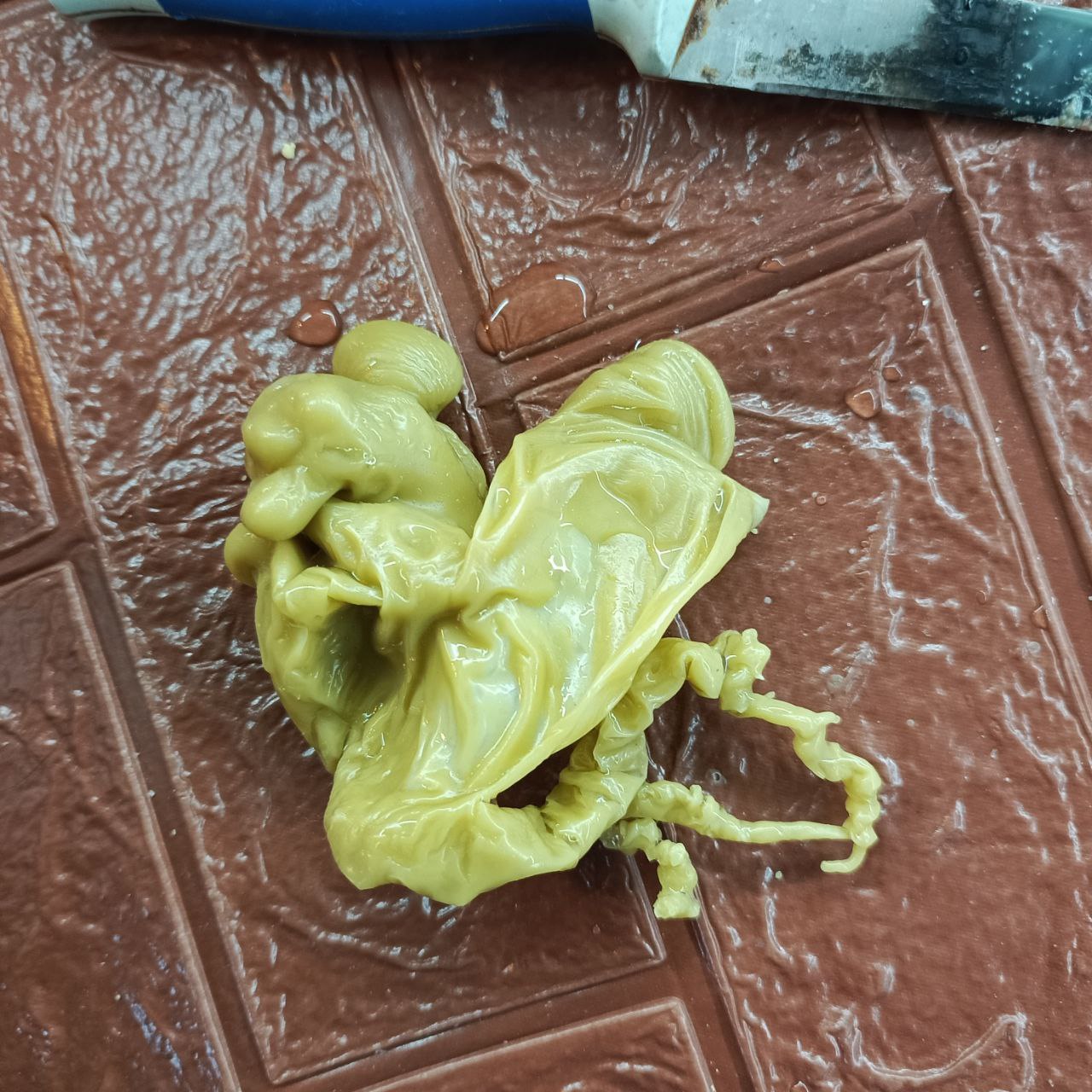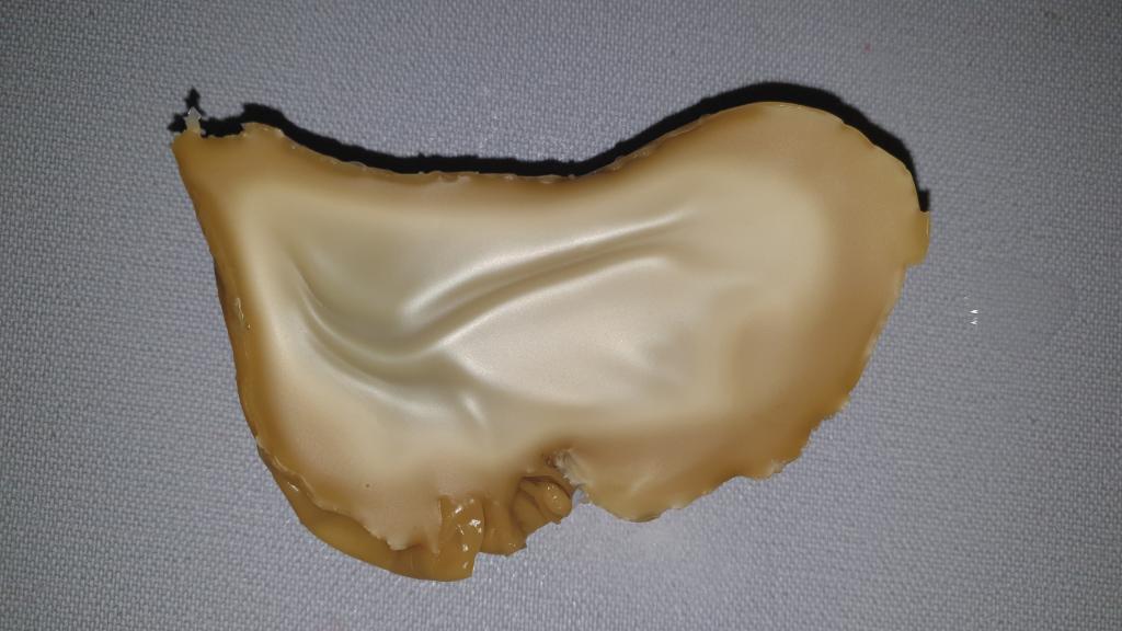 По белым ошметкам на краях отливки. Это уже заметно обычно когда только льете воск в воду, то сразу видно что он по краям начинает прозрачные рванные «мини кружева» формировать.