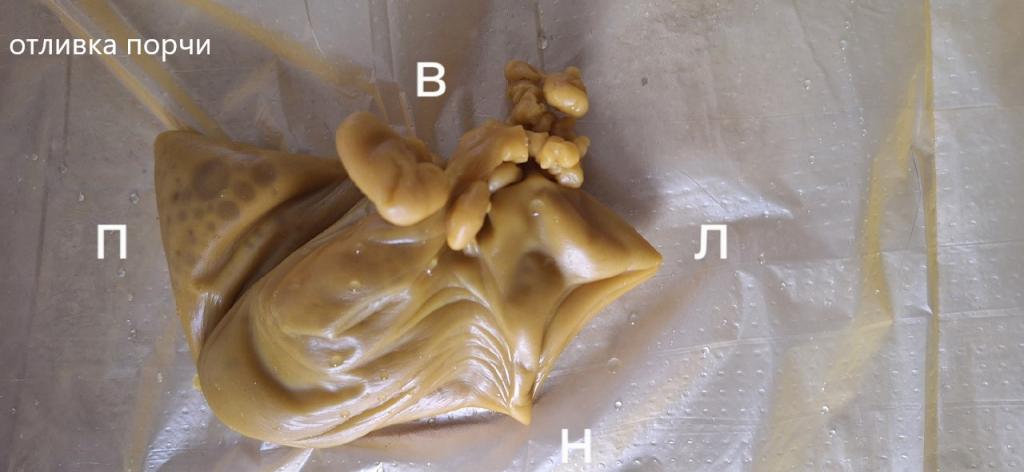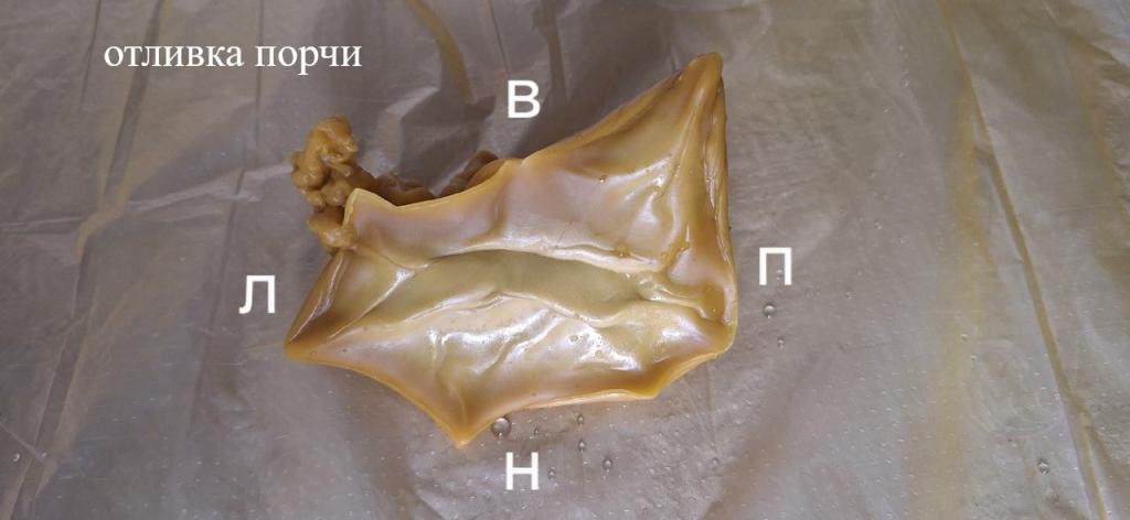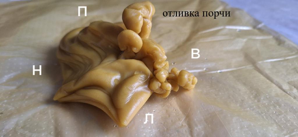 А это моя отливка тоже на изгнание и тоже через нож. Перед этим три дня делала отливки на снятие оморочек и себе и ему.