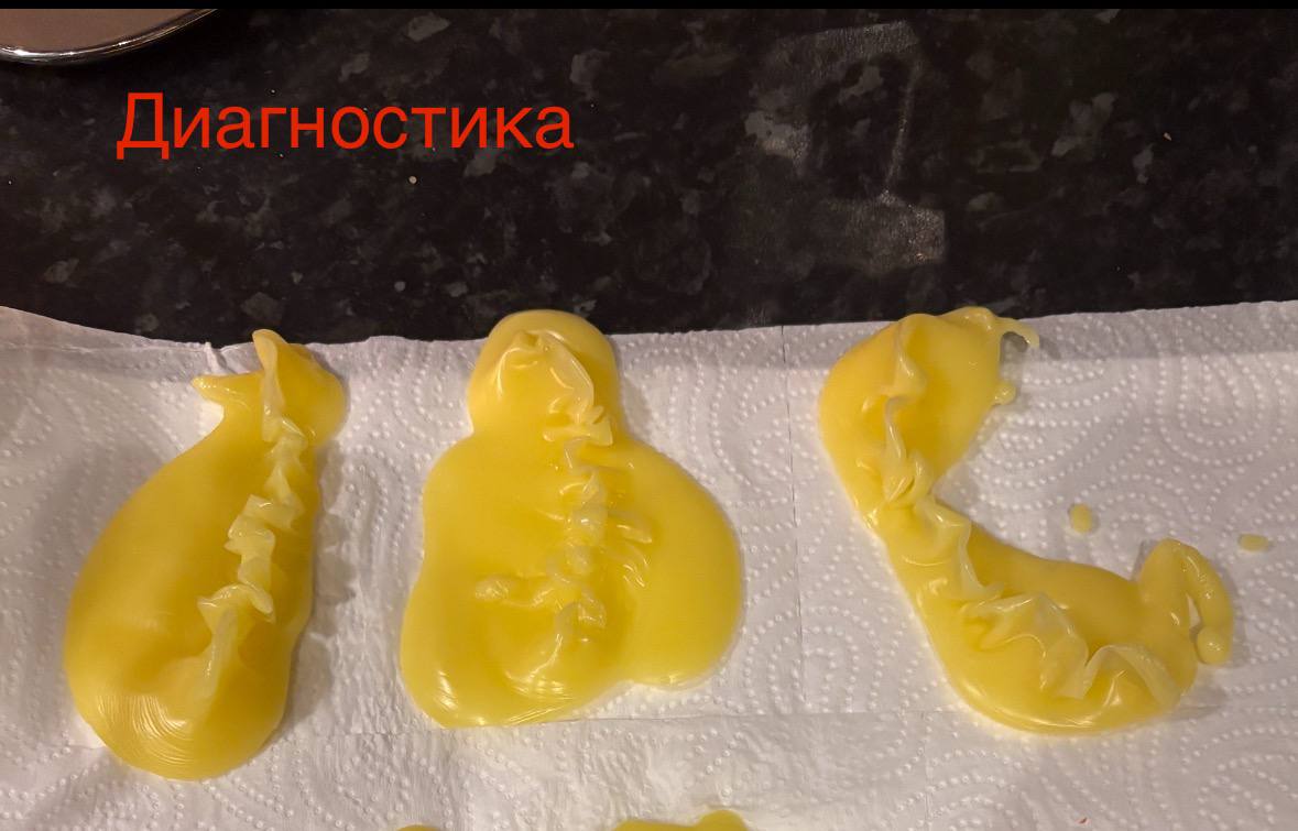 дд это они самые застывают в воске так. Без паники... Они же застывают... Работайте дальше и все. Что-то сняли с себя уже результат! С ув. У меня часто так бывает, считаю что это хорошо.